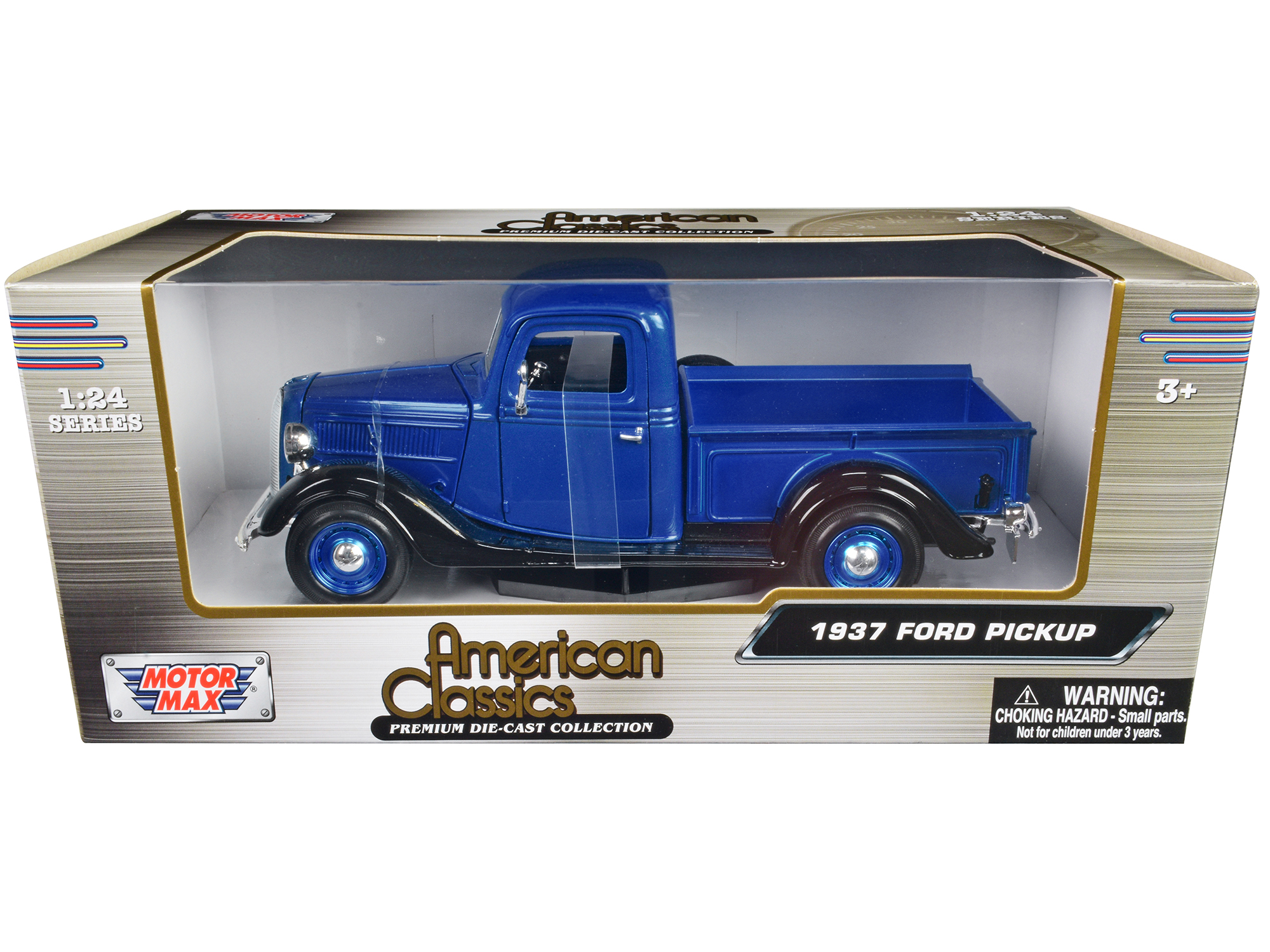 - Brand new 1/24 scale diecast car model of 1937 Ford Pickup Truck Blue Metallic and Black “American Classics” die cast model car by Motormax.