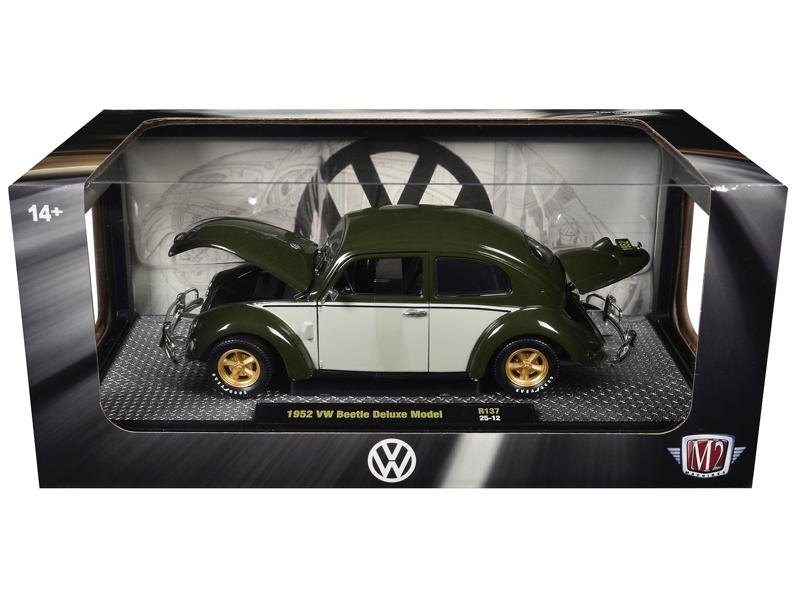 - Brand new 1/24 scale diecast car model of 1952 Volkswagen Beetle Deluxe Model Dark Green with Beige Sides Limited Edition to 5250 pieces Worldwide die cast model car by M2 Machines.