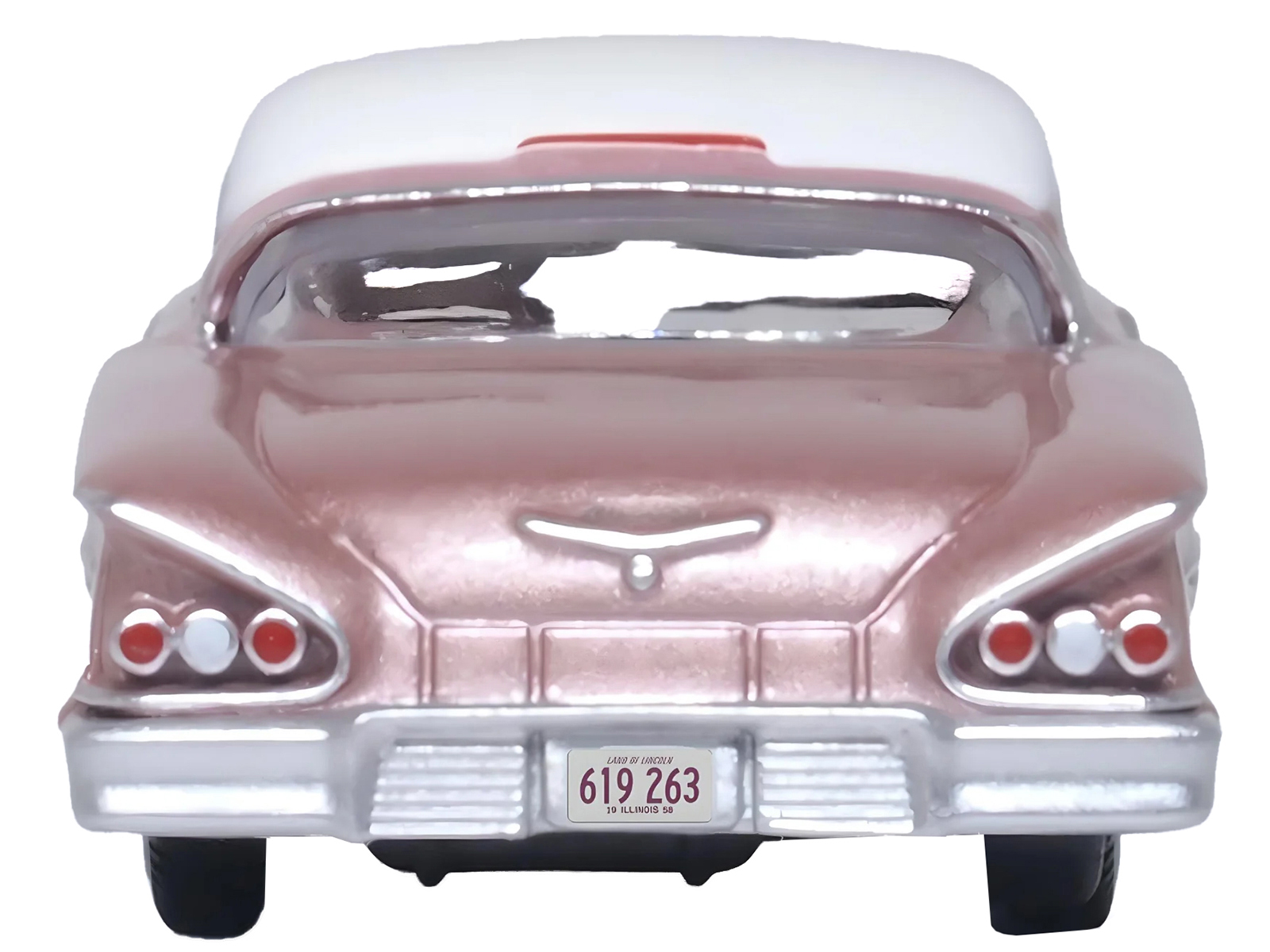 - Brand new 1/87 (HO) scale diecast car model of 1958 Chevrolet Impala Sport Cay Coral Pink Metallic with White Top die cast model car by Oxford Diecast.
