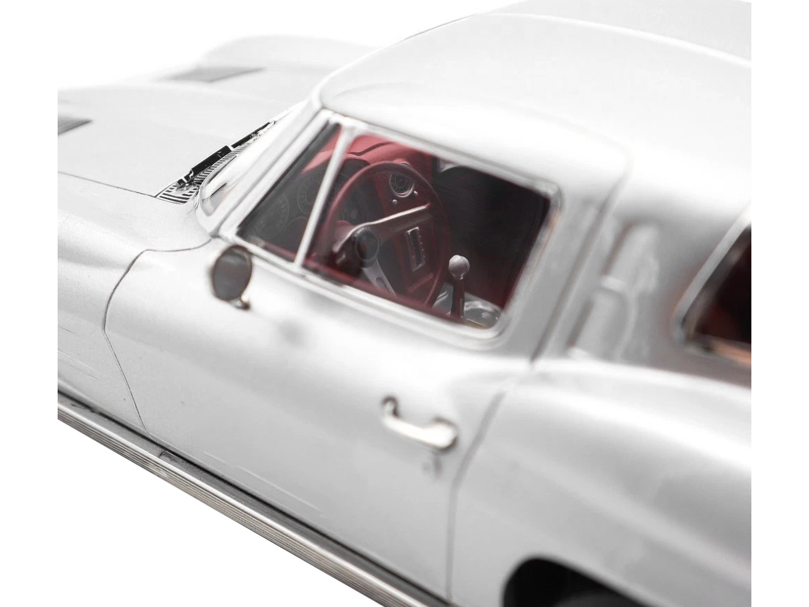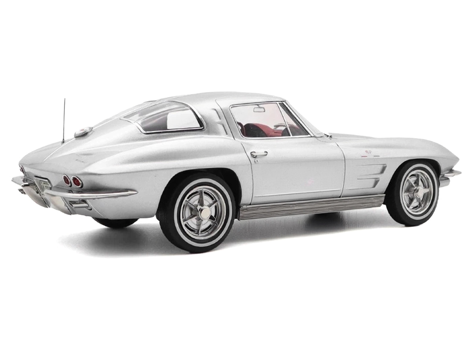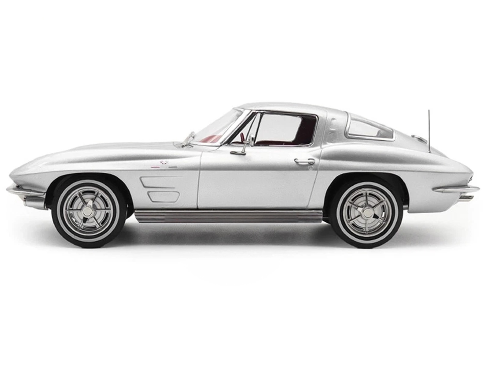 - Brand new 1/18 scale diecast car model of 1963 Chevrolet Corvette Sting Ray Sebring Silver Metallic with Red Interior die cast model car by Norev.