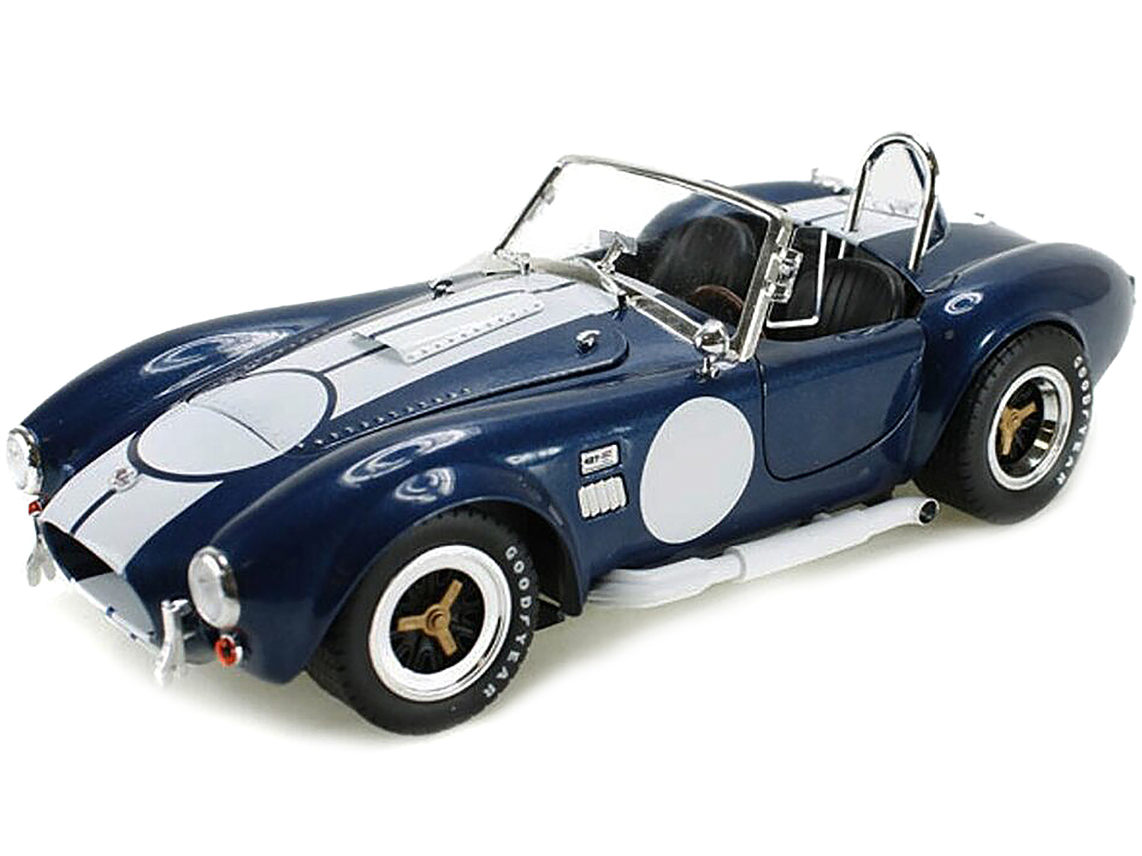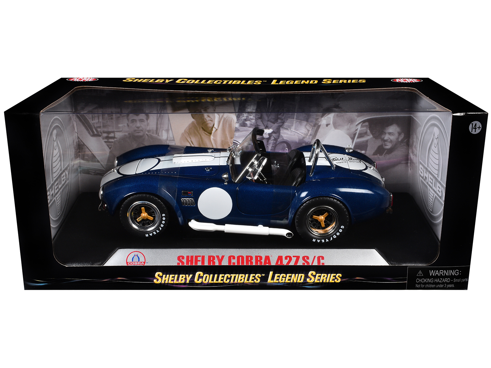 - Brand new 1/18 scale diecast car model of 1965 Shelby Cobra 427 S/C Dark Blue Metallic with White Stripes with Printed Carroll Shelby’s Signature on the Trunk die cast model car by Shelby Collectibles.