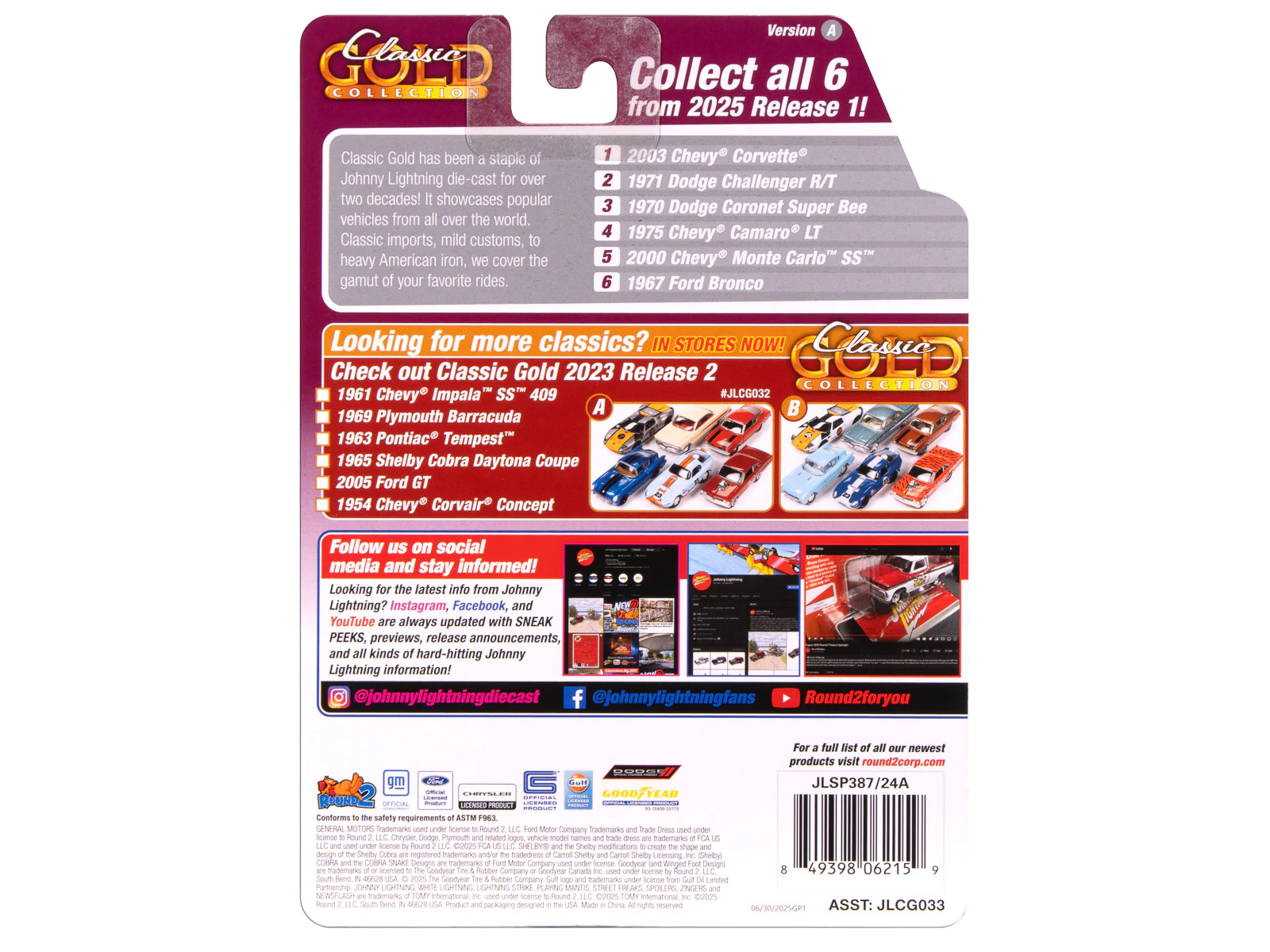 - Brand new 1/64 scale diecast car model of 1967 Ford Bronco Wimbledon White “Classic Gold Collection” die cast model car by Johnny Lightning.