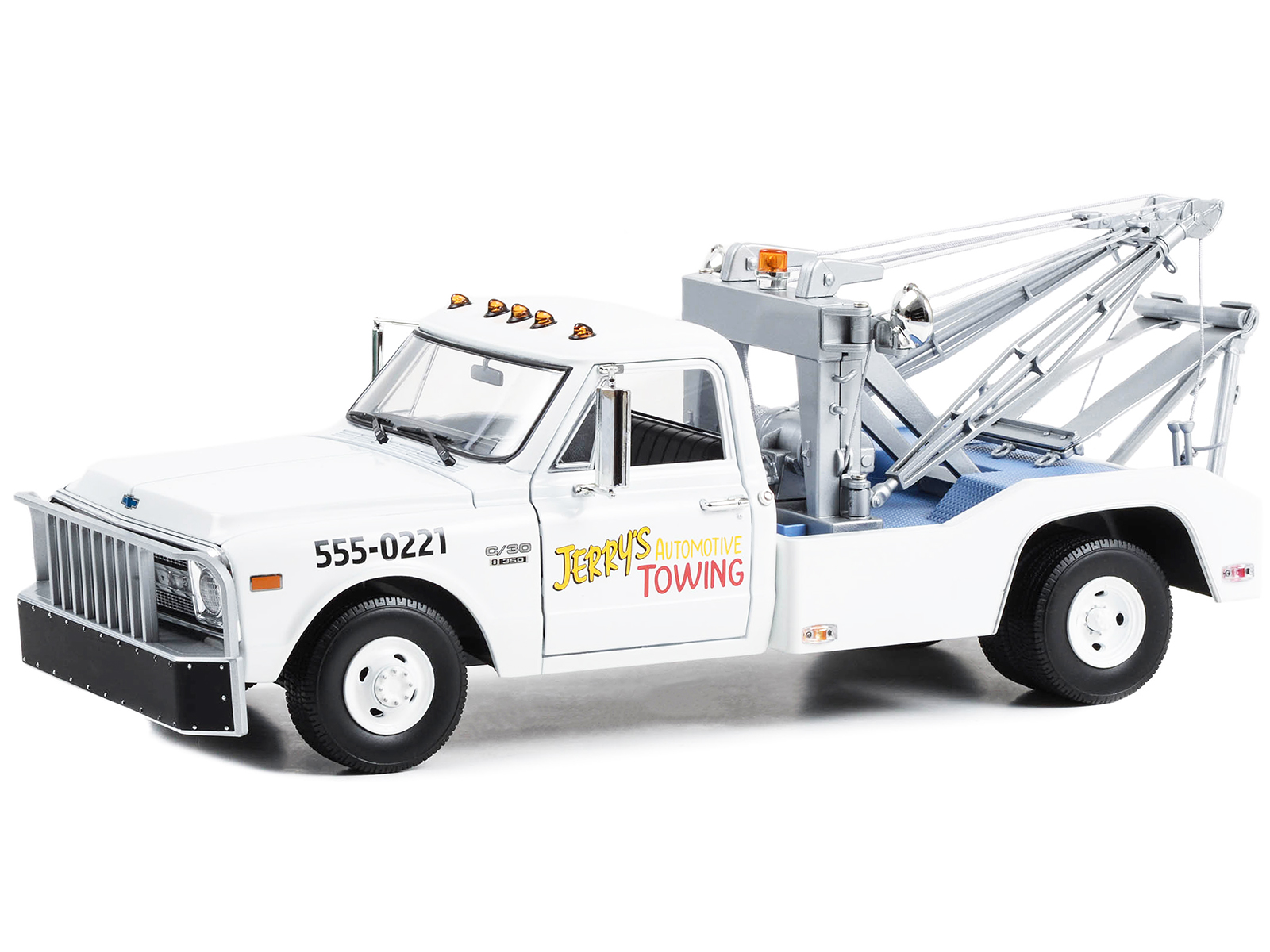 - Brand new 1/18 scale diecast car model of 1969 Chevrolet C-30 Dually Wrecker Tow Truck “Jerry’s Towing” White “The Fall Guy” (1981-1986) TV Series die cast model car by Greenlight.