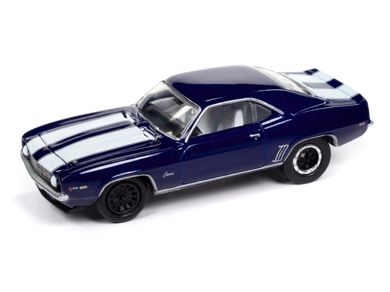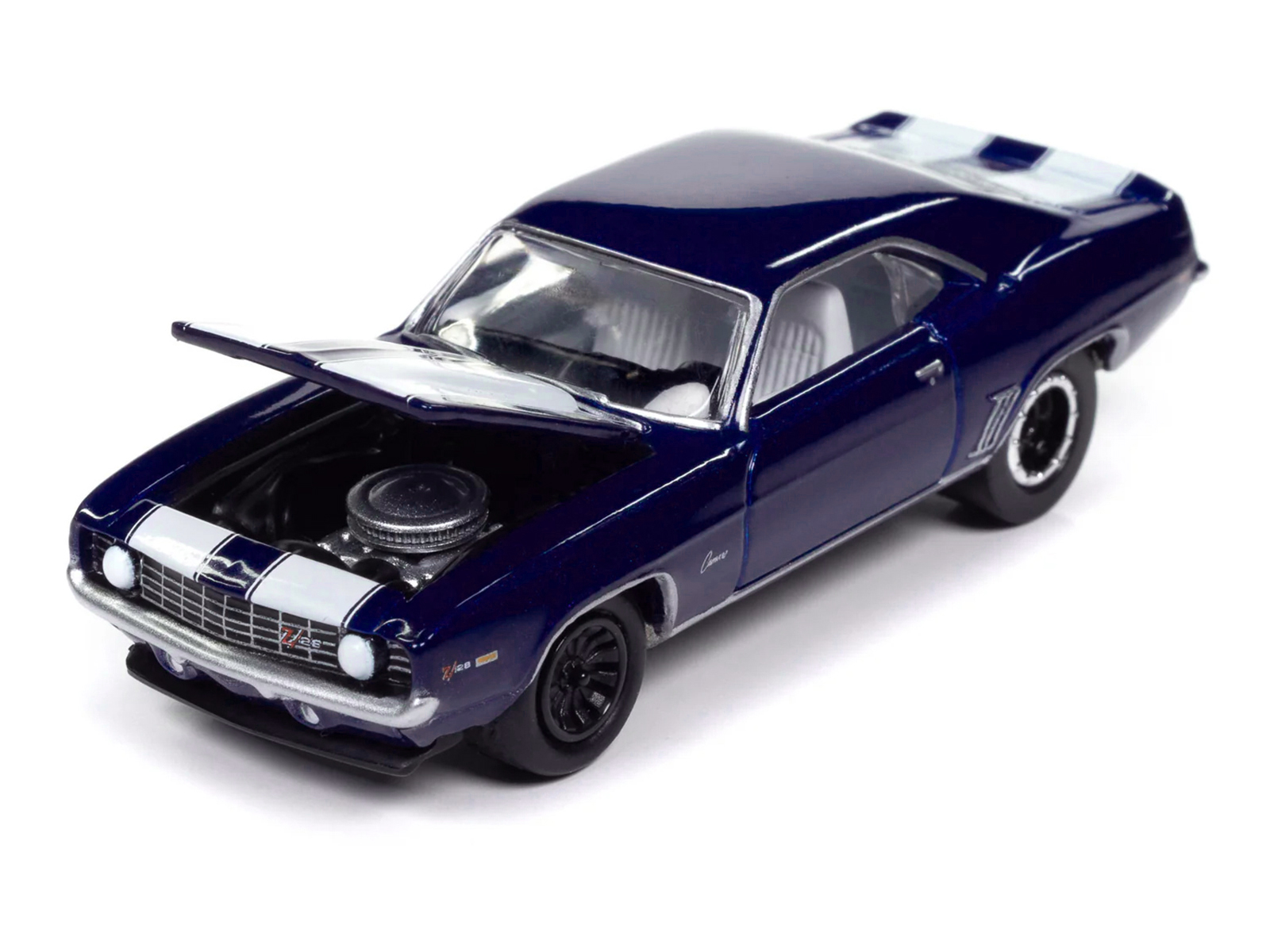 - Brand new 1/64 scale diecast car model of 1969 Chevrolet Camaro Z28 Blue Metallic with White Stripes and Interior “Muscle Cars USA” Series die cast model car by Johnny Lightning.