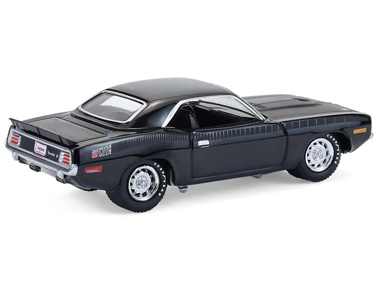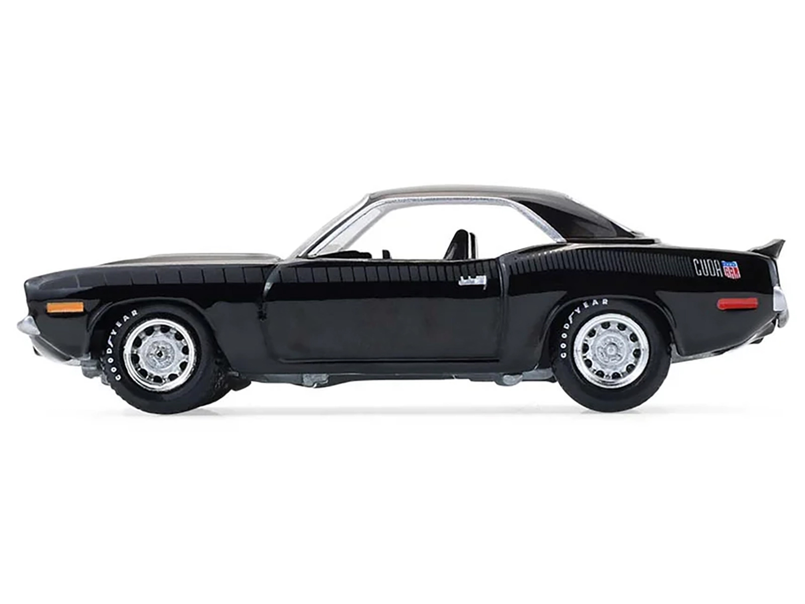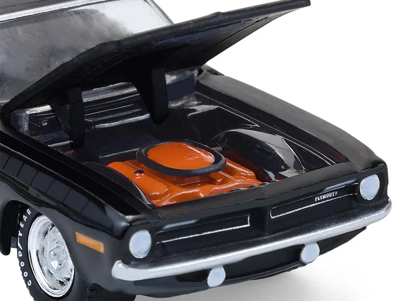 - Brand new 1/64 scale diecast car model of 1970 Plymouth ‘Cuda AAR Black with Gray Stripes “Barrett-Jackson” Series 16 die cast model car by Greenlight.