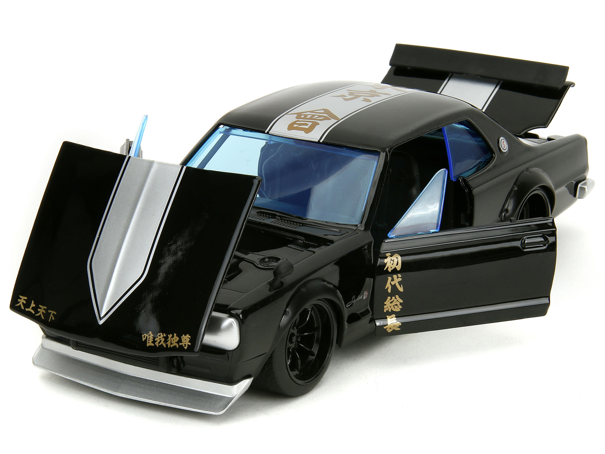 - Brand new 1/24 scale diecast car model of 1971 Nissan Skyline GT-R RHD (Right Hand Drive) Black with Silver Stripe and Mikey Diecast Figure “Tokyo Revengers” (2021) TV Series “Anime Hollywood Rides” Series die cast model car by Jada.