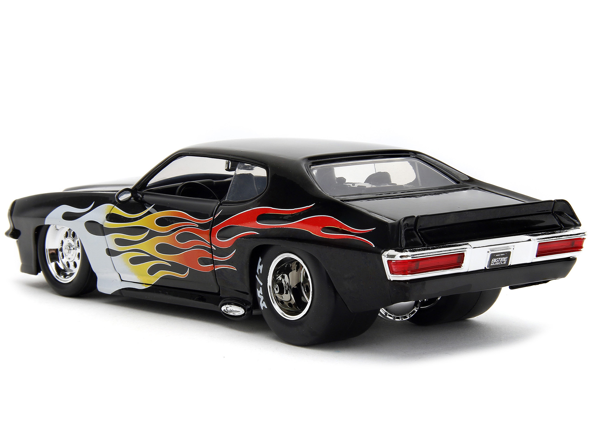 - Brand new 1/24 scale diecast car model of 1971 Pontiac GTO Black with Flame Graphics “Bigtime Muscle” Series die cast model car by Jada.