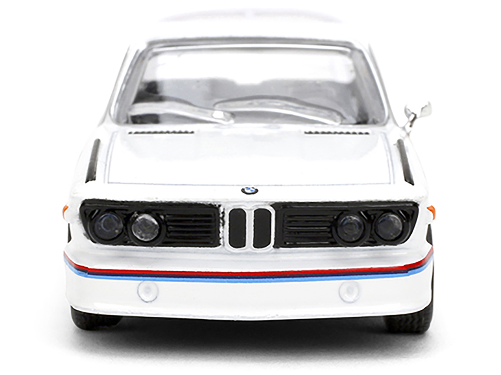 - Brand new 1/64 scale diecast car model of 1975 BMW 3.0 CSL White with Red and Blue Stripes “Collection” Series die cast model car by Majorette.