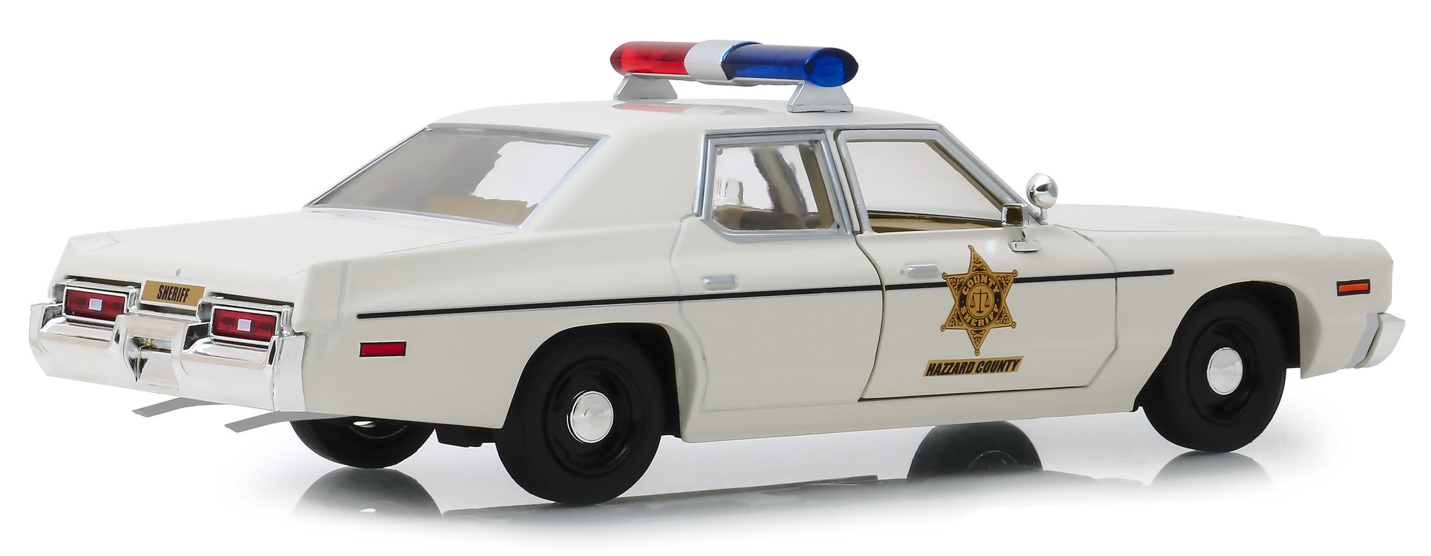- Brand new 1/24 scale diecast car model of 1975 Dodge Monaco Cream “Hazzard County Sheriff” die cast model car by Greenlight.