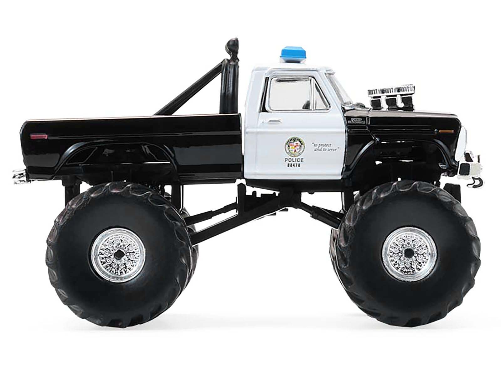 - Brand new 1/64 scale diecast car model of 1978 Ford F-250 Monster Truck “LAPD (Los Angeles Police Department)” Black and White “Kings of Crunch – Hot Pursuit” Special Edition die cast model car by Greenlight.