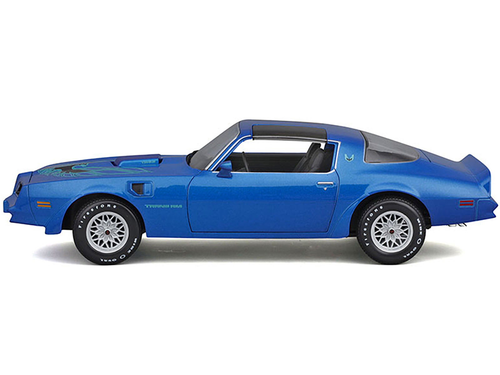 - Brand new 1/18 scale diecast car model of 1978 Pontiac Firebird Trans Am Blue Metallic with Hood Graphics “Special Edition” Series die cast model car by Maisto.