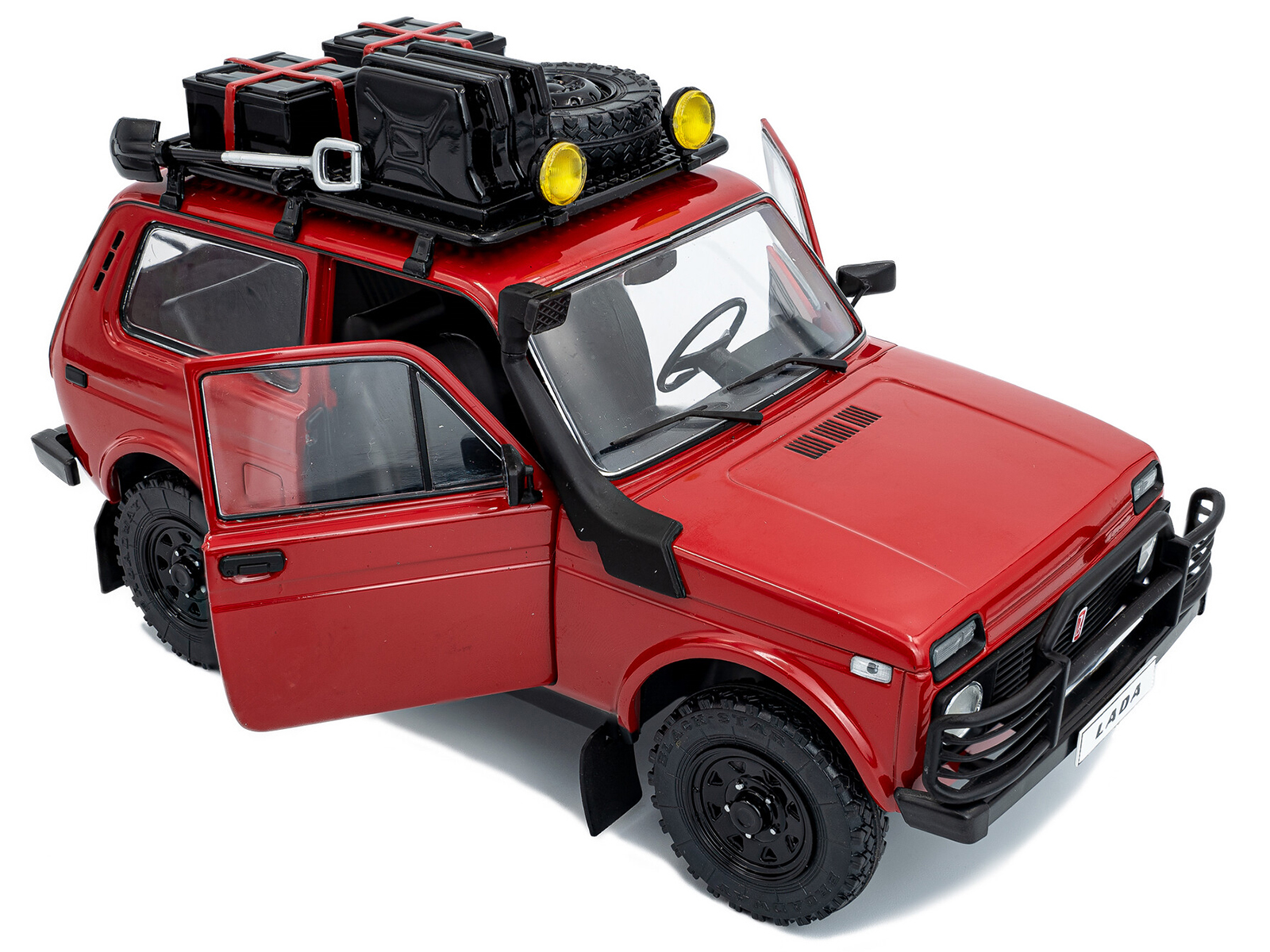 - Brand new 1/18 scale diecast car model of 1980 Lada Niva Red with Roof Rack and Accessories die cast model car by Solido.