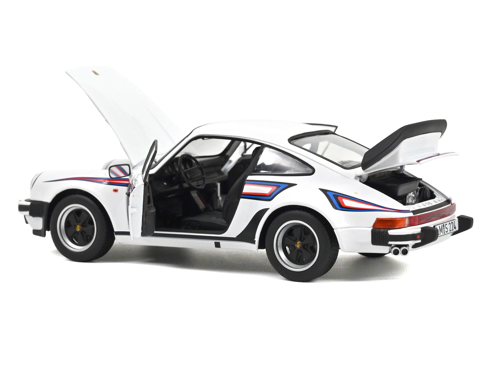 - Brand new 1/18 scale diecast car model of 1980 Porsche 911 Turbo 3.3 White with Blue and Red Graphics die cast model car by Norev.