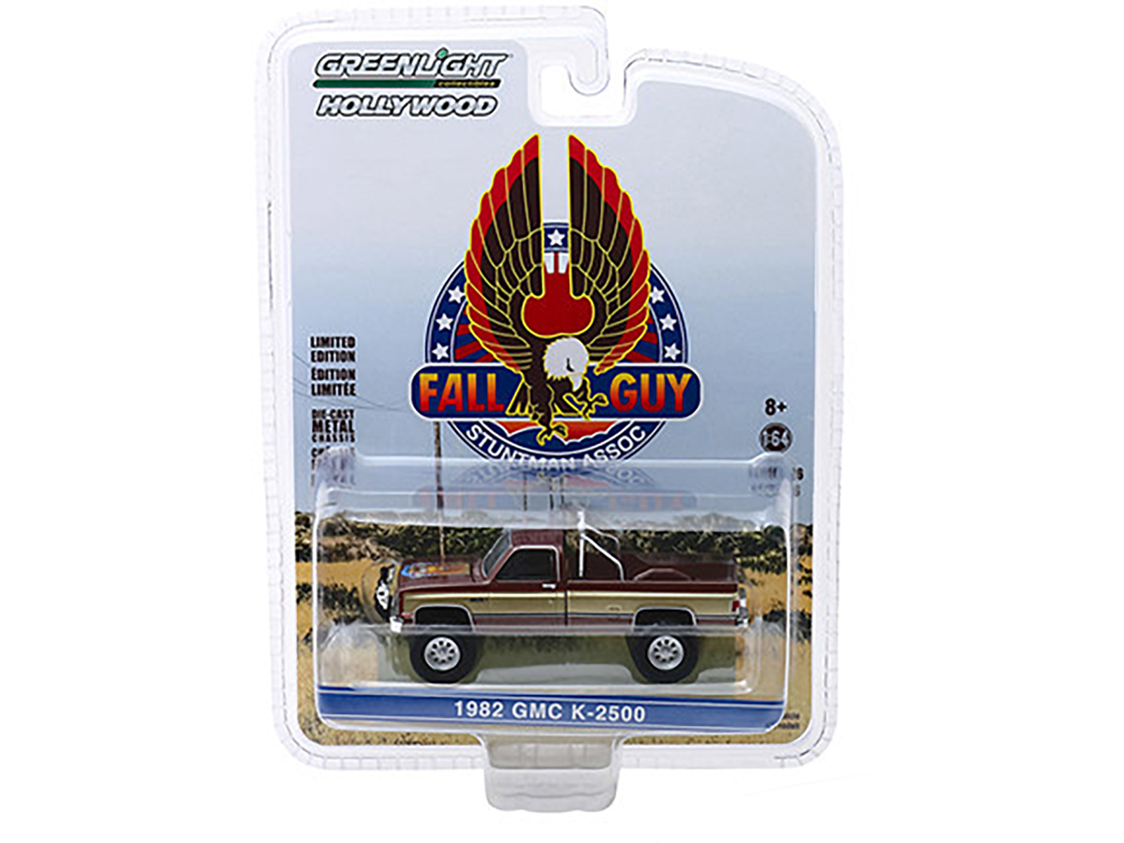 - Brand new 1/64 scale diecast car model of 1982 GMC K-2500 Pickup Truck Brown Metallic with Gold Stripes “Fall Guy Stuntman Association” “The Fall Guy” (1981-1986) TV Series “Hollywood Series” Release 26 die cast model car by Greenlight.