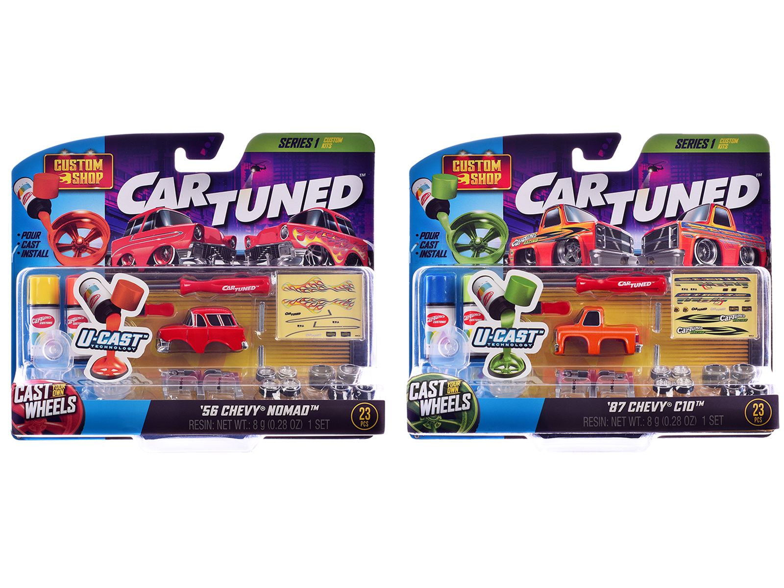 - 23 piece customizable sets for each car.