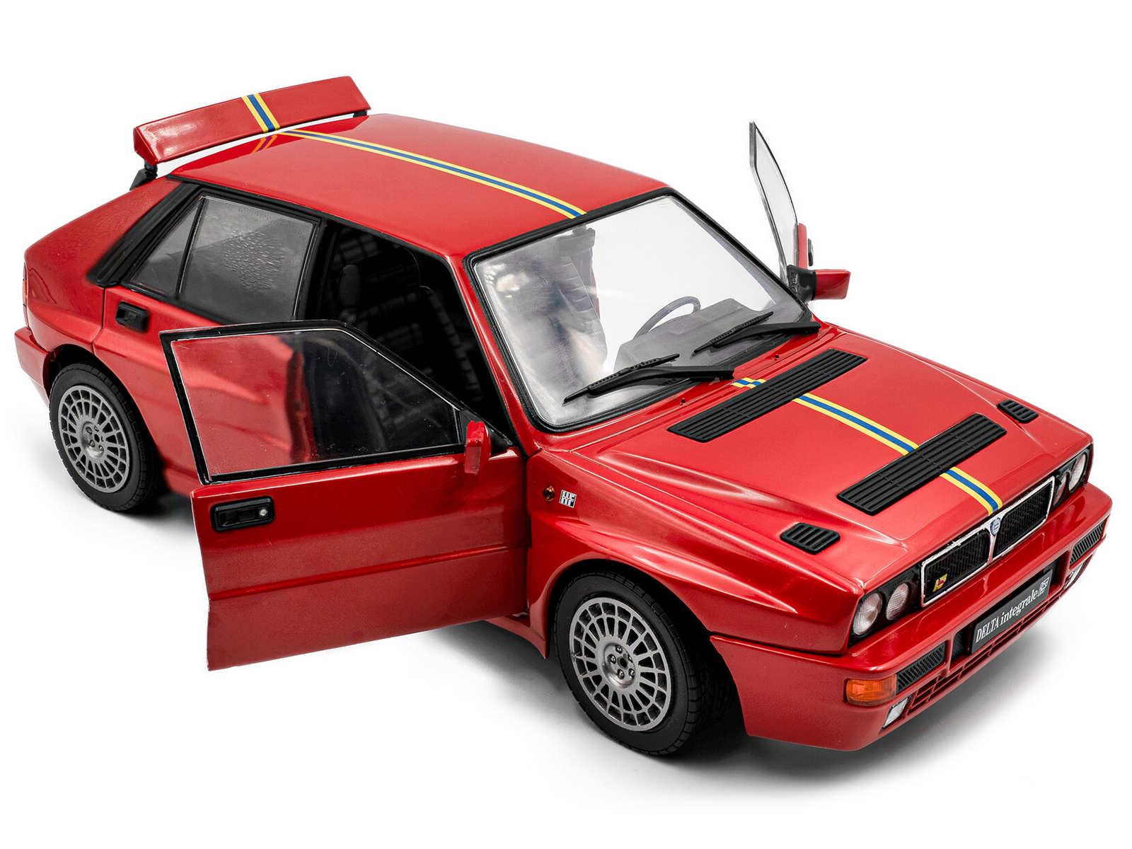 - Brand new 1/18 scale diecast car model of 1995 Lancia Delta HF Integrale Edizione Finale Red with Stripes die cast model car by Solido.