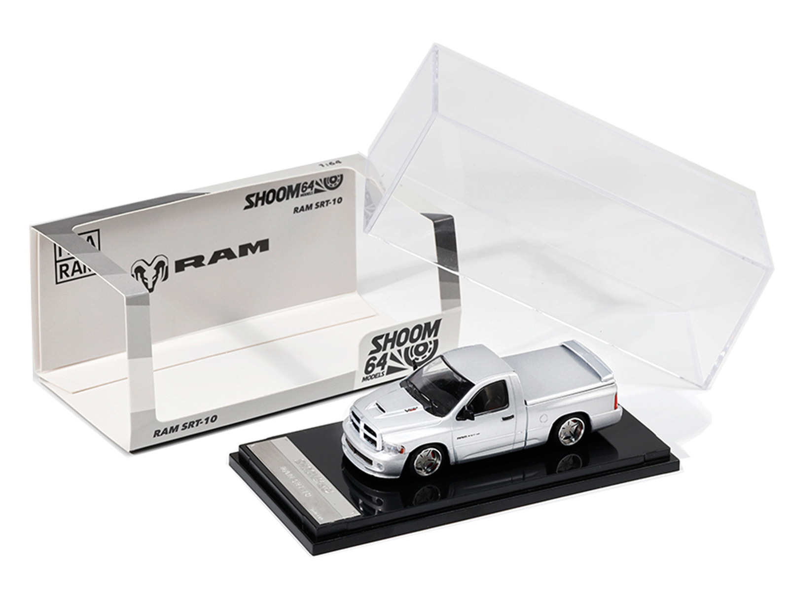 - Brand new 1/64 scale diecast model car of 2003 Dodge Ram SRT-10 Pickup Truck Silver Metallic die cast model car by Shoom64 Models.