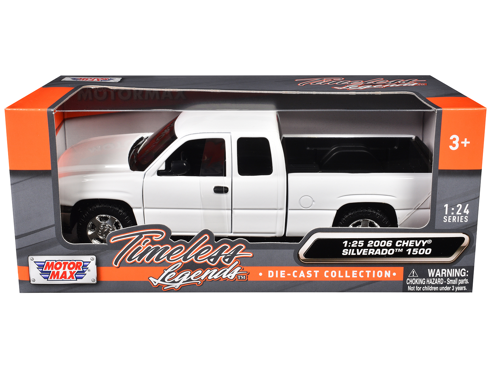 - Brand new 1/25 scale diecast model car of 2006 Chevrolet Silverado 1500 Pickup Truck White “Timeless Legends” Series die cast car model by Motormax.