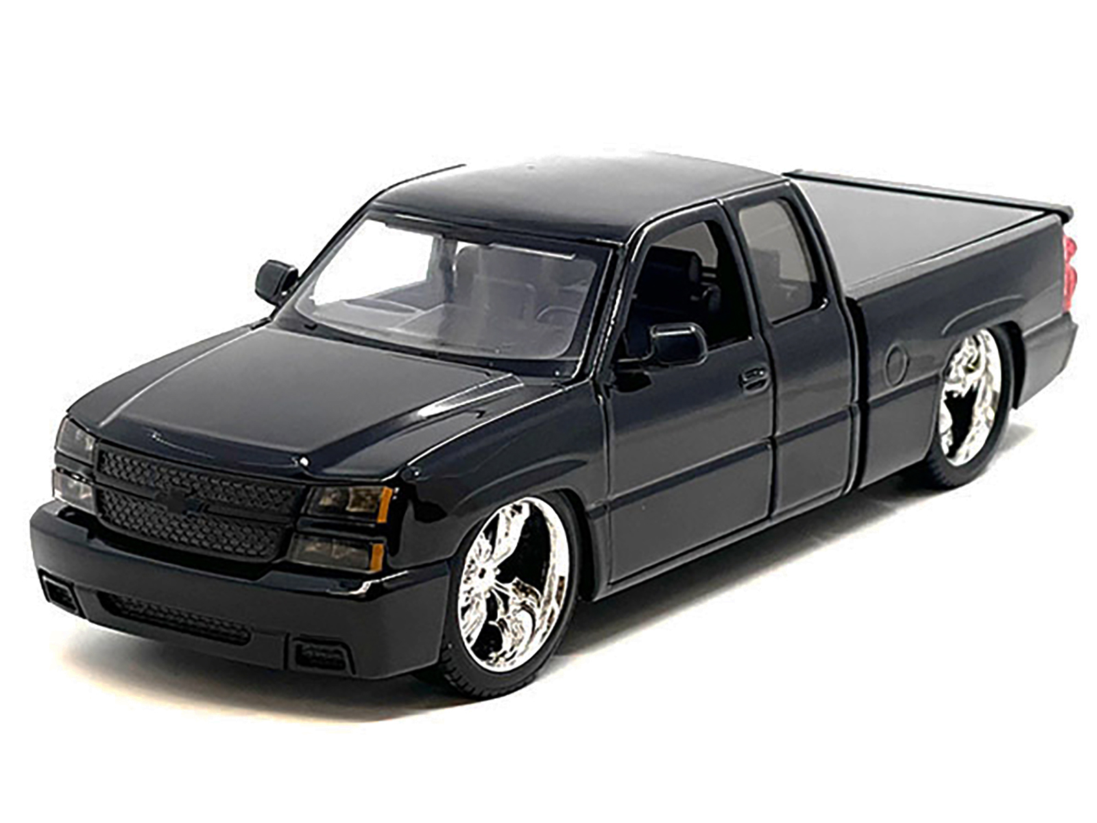 - Brand new 1/25 scale diecast model car of 2006 Chevrolet Silverado Custom Pickup Truck Black “Die-Cast Collection” Series die cast car model by Motormax.