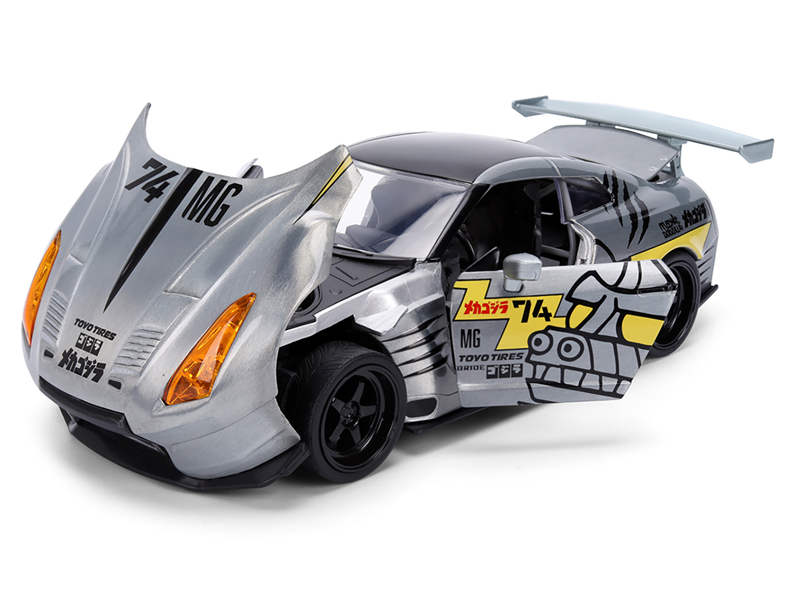 - Brand new 1/24 scale diecast model of 2009 Nissan GT-R (R35) Ben Sopra Brushed Metal with Black Top and Graphics and Mechagodzilla Diecast Figure “Godzilla” Franchise “Anime Hollywood Rides” Series die cast model by Jada.