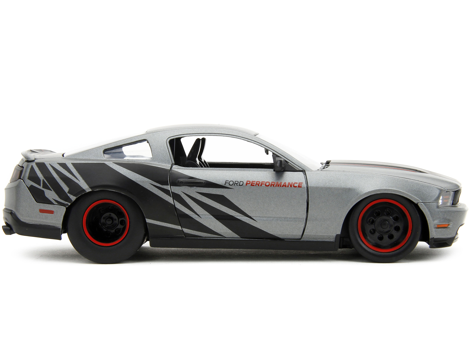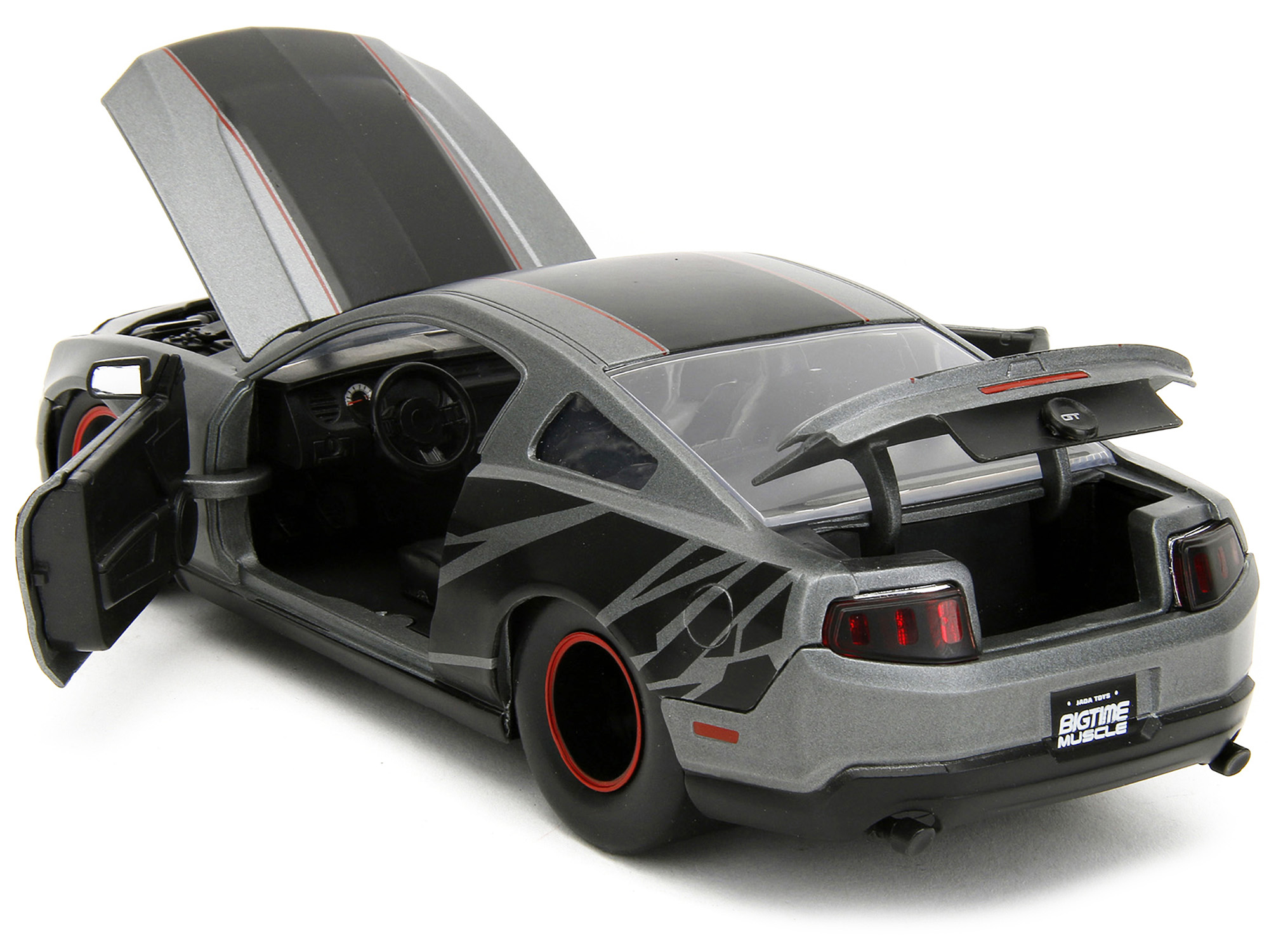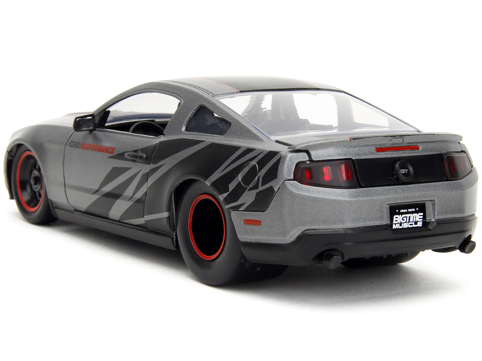- Brand new 1/24 scale diecast car model of 2010 Ford Mustang GT Matt Gray Metallic with Black Graphics and Stripes “Ford Performance” “Bigtime Muscle” Series die cast model car by Jada.