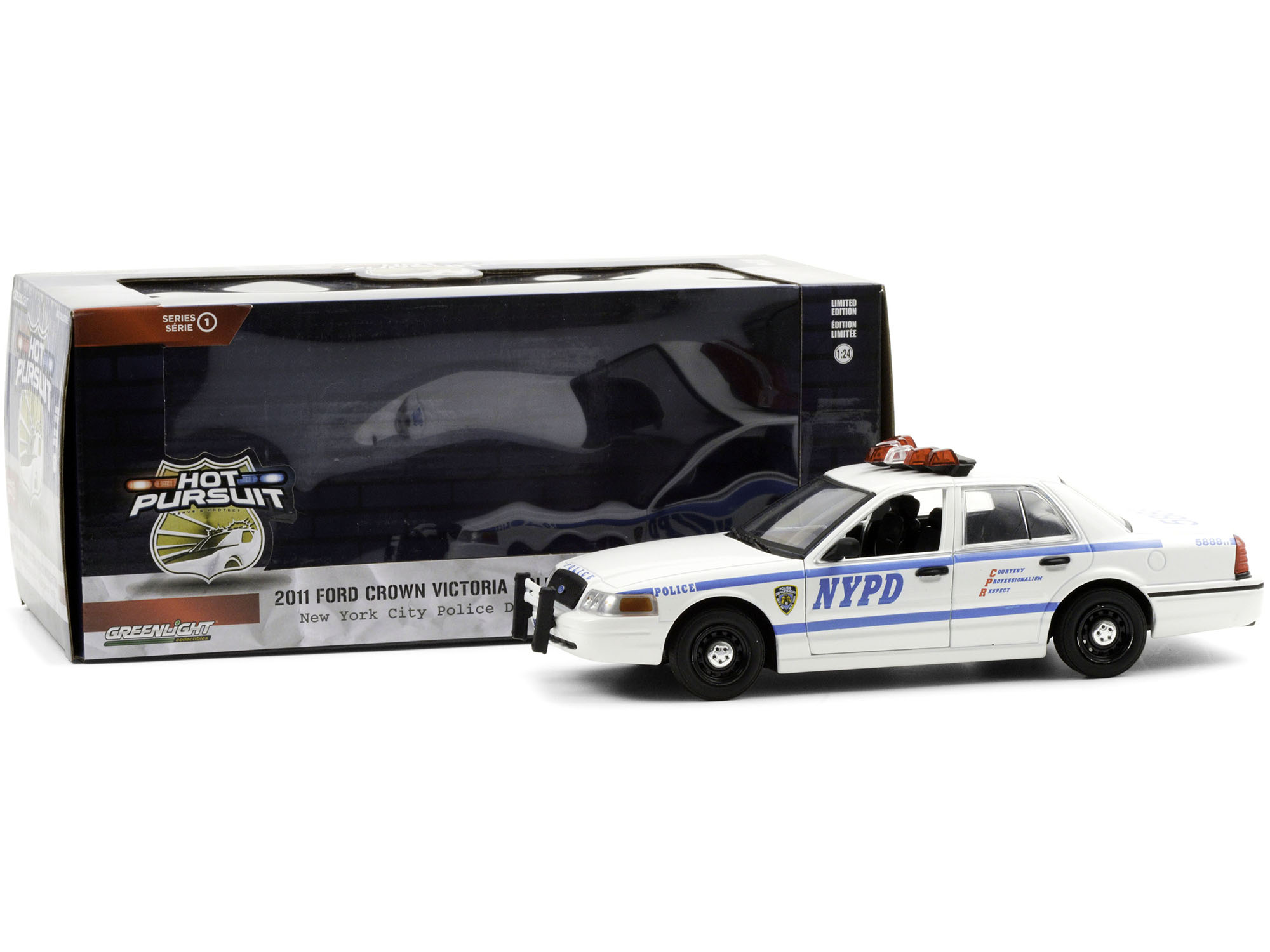 - Brand new 1/24 scale diecast car model of 2011 Ford Crown Victoria Police Interceptor “New York City Police Department” (NYPD) White “Hot Pursuit” Series die cast model car by Greenlight.