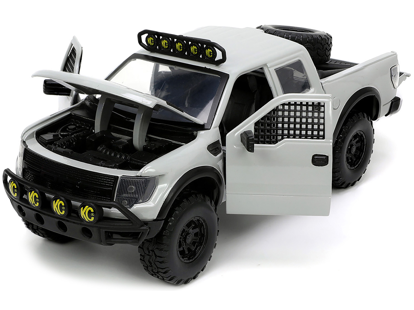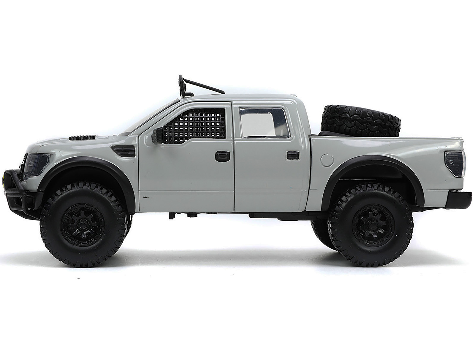 - Brand new 1/24 scale diecast car model of 2011 Ford F-150 SVT Raptor Pickup Truck Light Gray with Extra Wheels “Just Trucks” Series die cast model car by Jada.