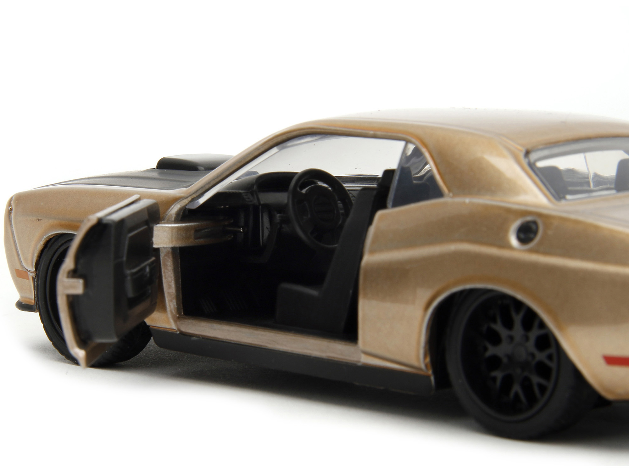 - Brand new 1/32 scale diecast car model 2012 Dodge Challenger SRT8 Gold Metallic with Black Hood “Pink Slips” Series die cast car model by Jada.