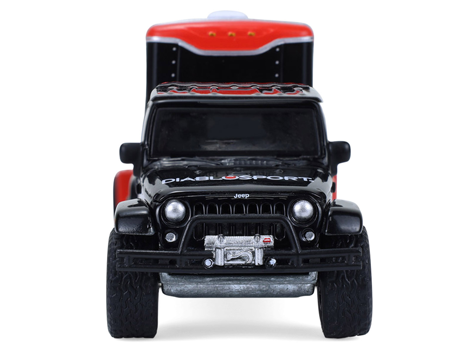 - Brand new 1/64 scale diecast car models of 2012 Jeep Wrangler Unlimited “Diablo Sport” Black with Red Graphics and Small Cargo Trailer “Hitch & Tow” Series 33 die cast model cars by Greenlight.