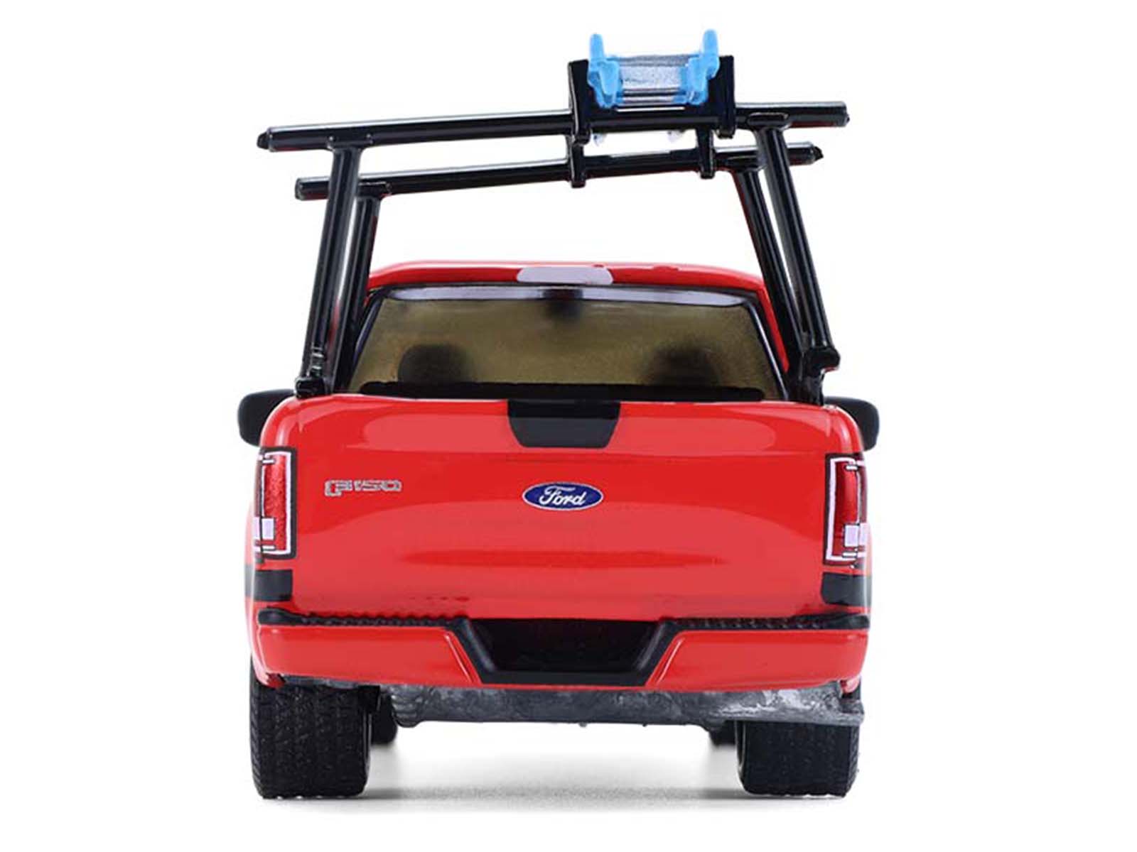 - Brand new 1/64 scale diecast model of 2015 Ford F-150 Pickup Truck with Ladder Rack Red with Black Stripes “Down on the Farm” Series 11 die cast model by Greenlight.