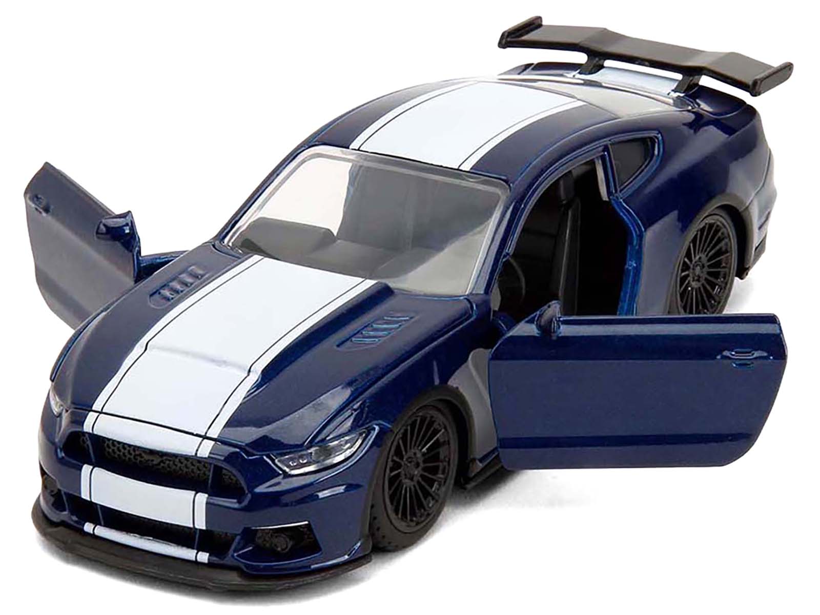 - Brand new 1/32 scale diecast car model of 2016 Ford Mustang GT Dark Blue Metallic with White Stripe “F9” (2021) Movie “Fast & Furious” Series die cast model car by Jada.