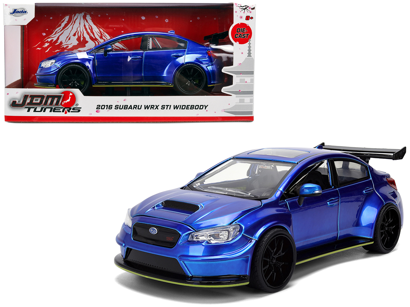 - Brand new 1/24 scale diecast car model of 2016 Subaru WRX STI Widebody Blue Metallic “JDM Tuners” Series die cast model car by Jada.