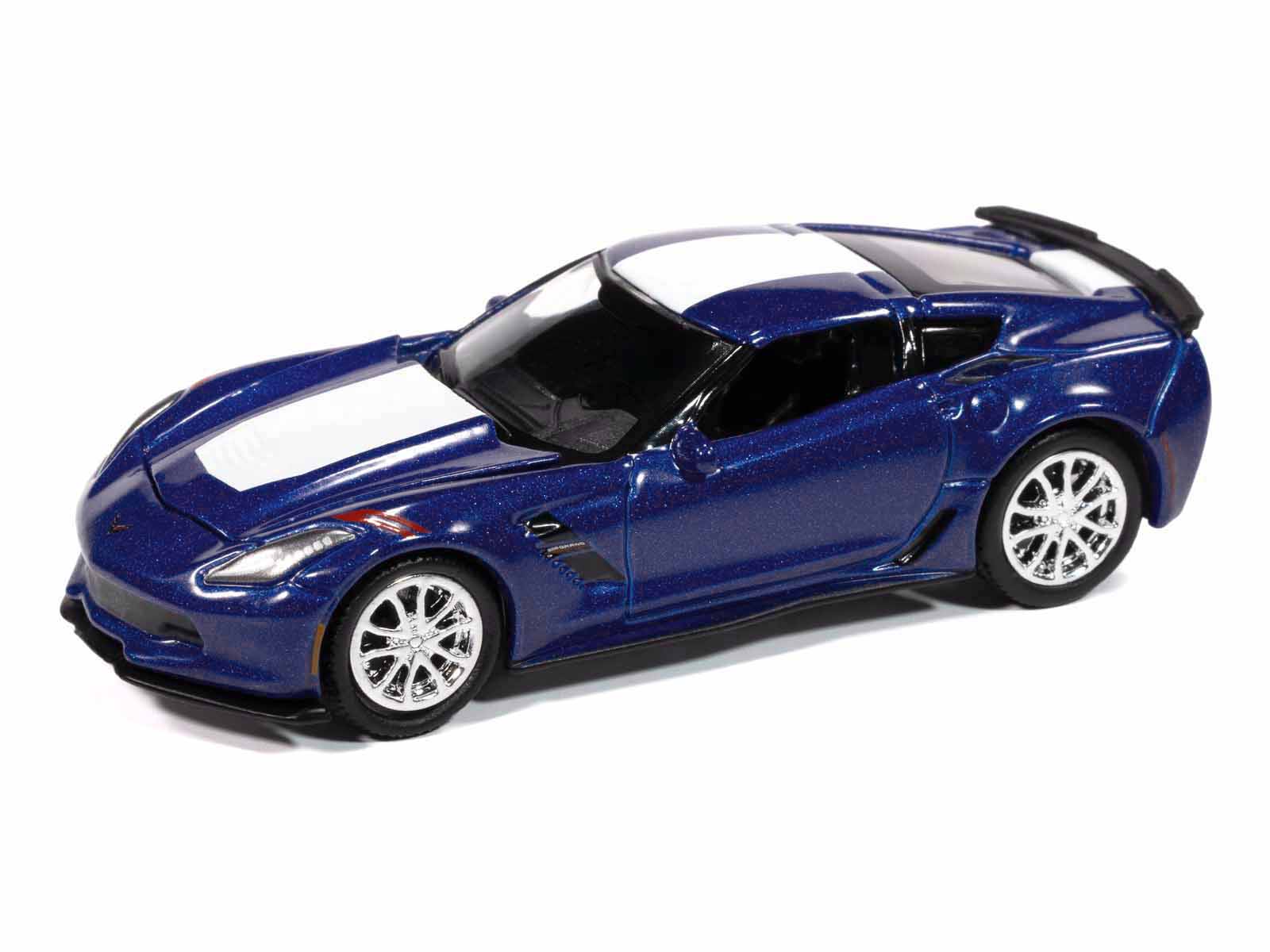 - Brand new 1/64 scale diecast car model of 2018 Chevrolet Corvette Grand Sport Admiral Blue with White Stripe “Sports Cars” Series die cast model car by Auto World.