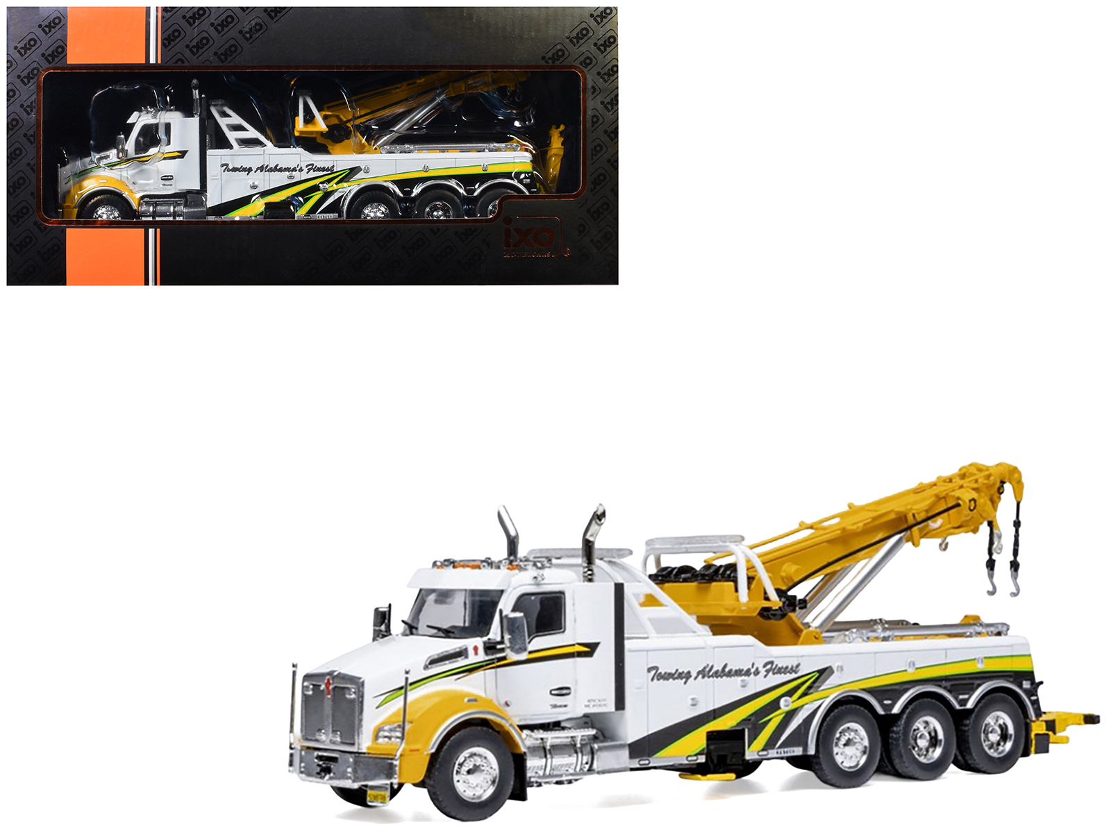 - Brand new 1/43 scale diecast model of 2018 Kenworth T880 Wrecker Tow Truck “Towing Alabama’s Finest” White with Graphics die cast model by IXO Models.