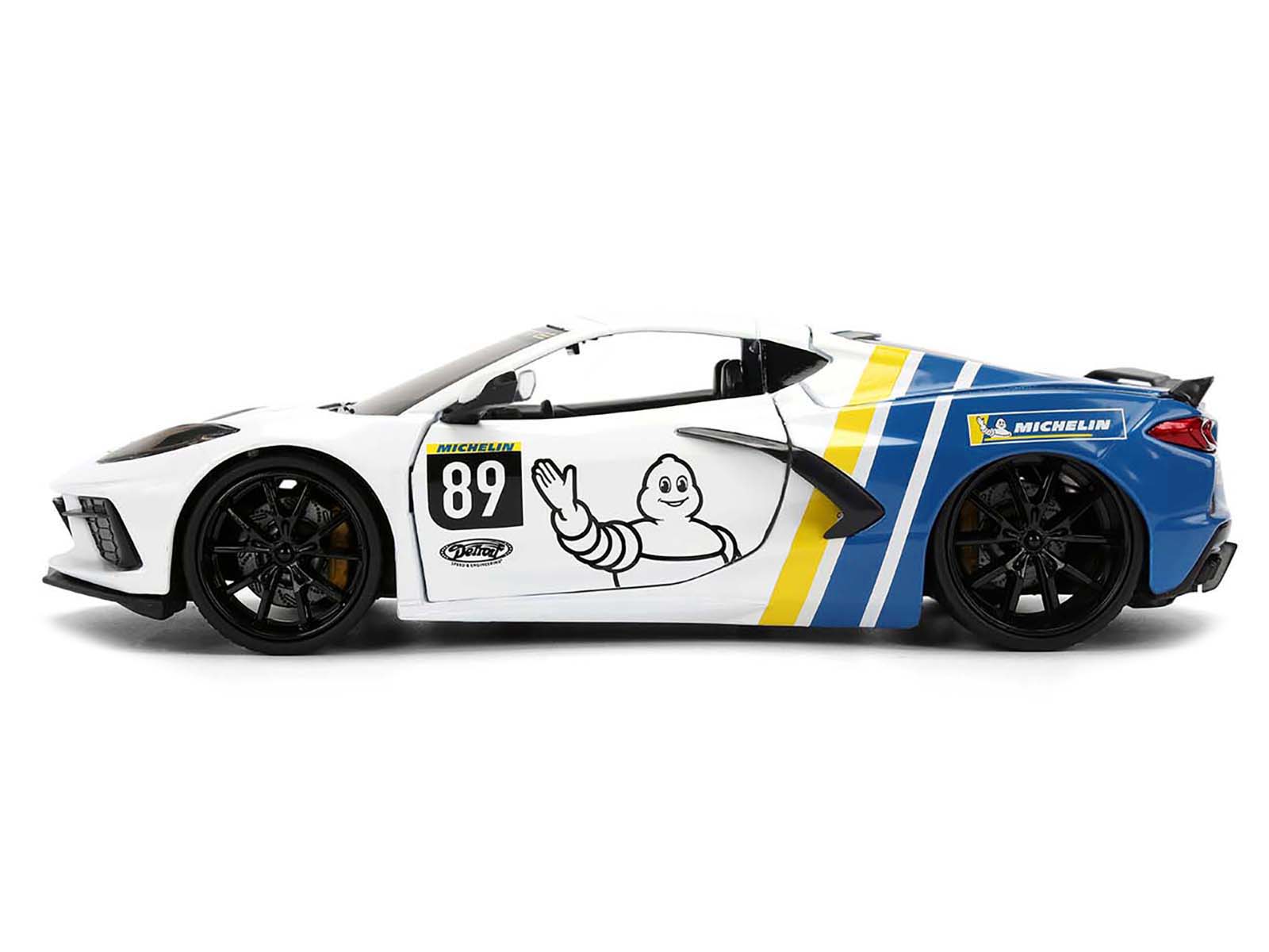 - Brand new 1/24 scale diecast car model of 2020 Chevrolet Corvette Stingray C8 #89 “Michelin” White with Yellow and Blue Stripes “Bigtime Muscle” Series die cast model car by Jada.