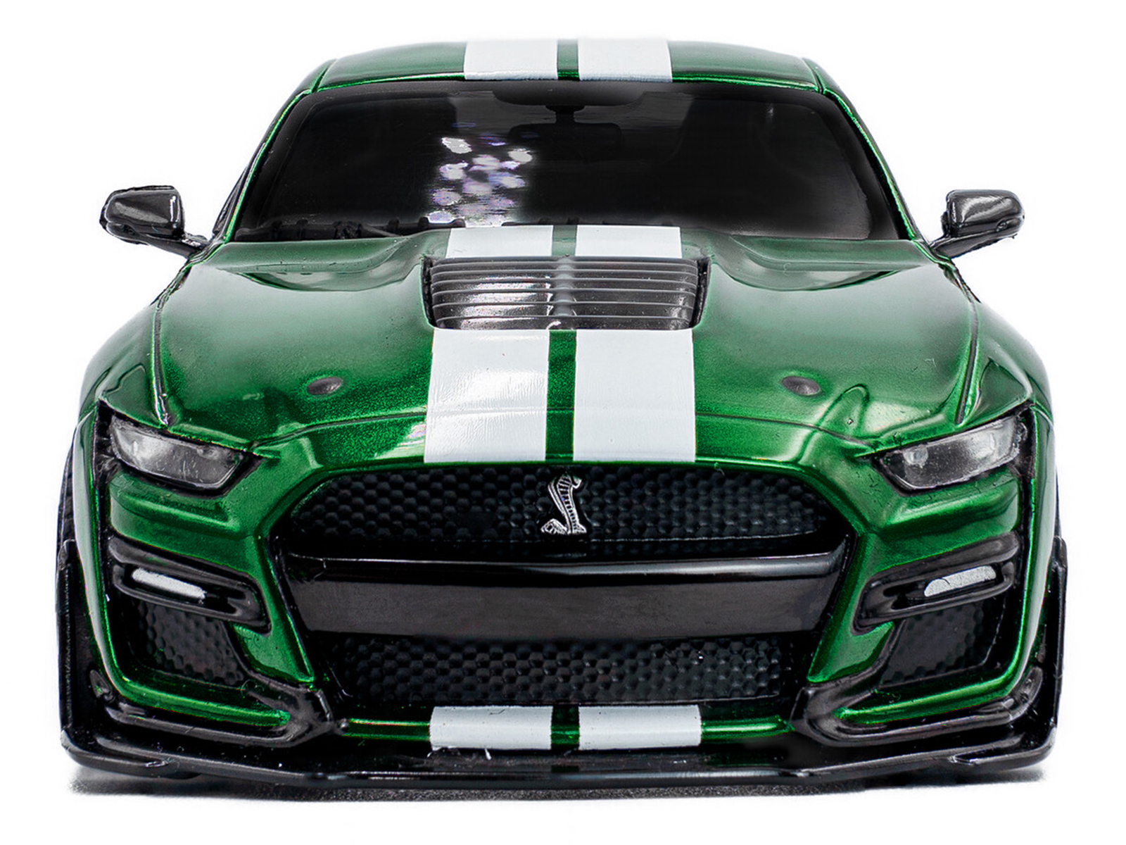 - Brand new 1/43 scale diecast car model of 2020 Ford Mustang Shelby GT500 Fast Track Eruption Green Metallic with White Stripes die cast model car by Solido.