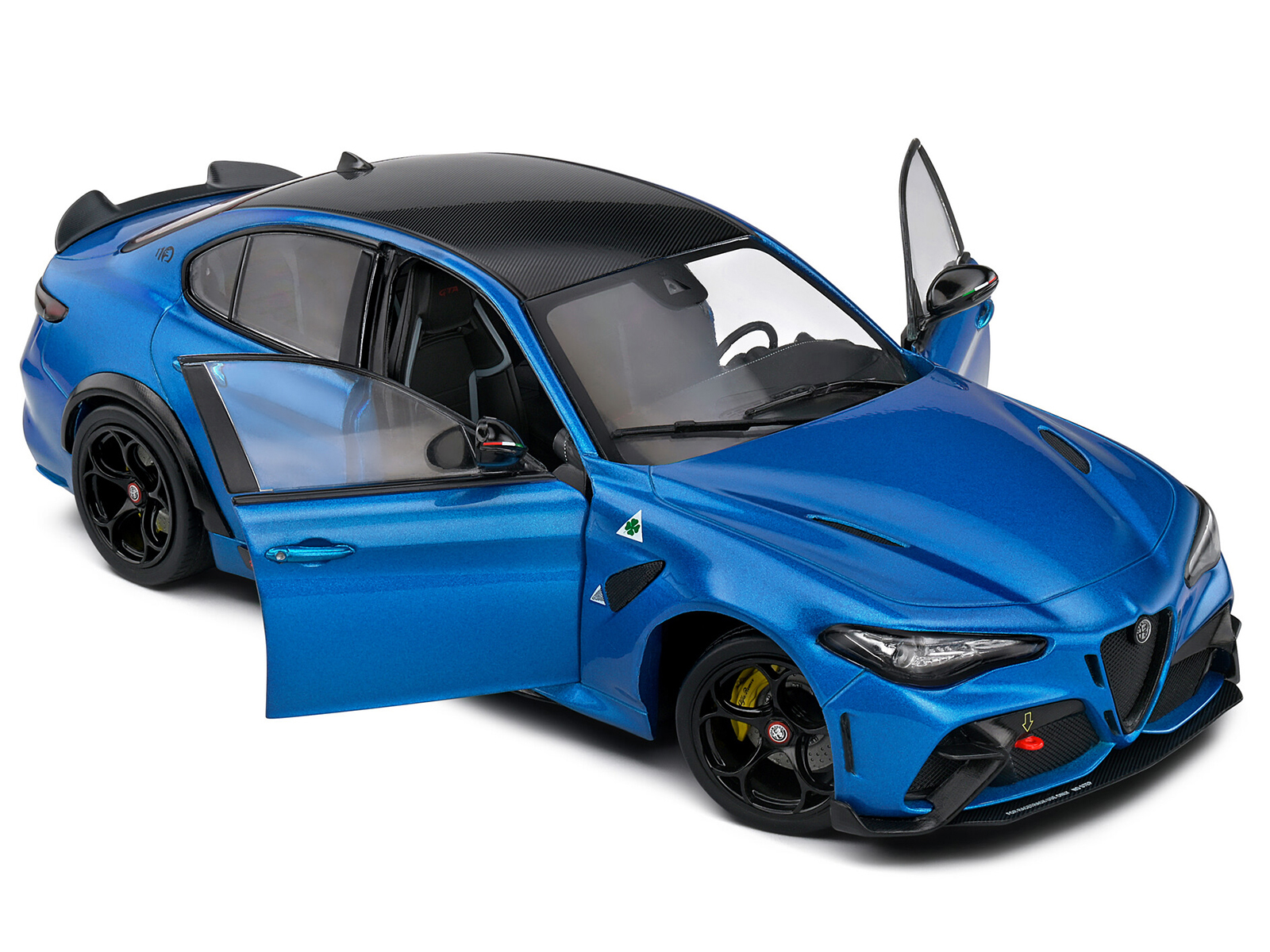 - Brand new 1/18 scale diecast car model of 2022 Alfa Romeo Giulia GTA Anodized Blue Metallic with Carbon Top die cast model car by Solido.