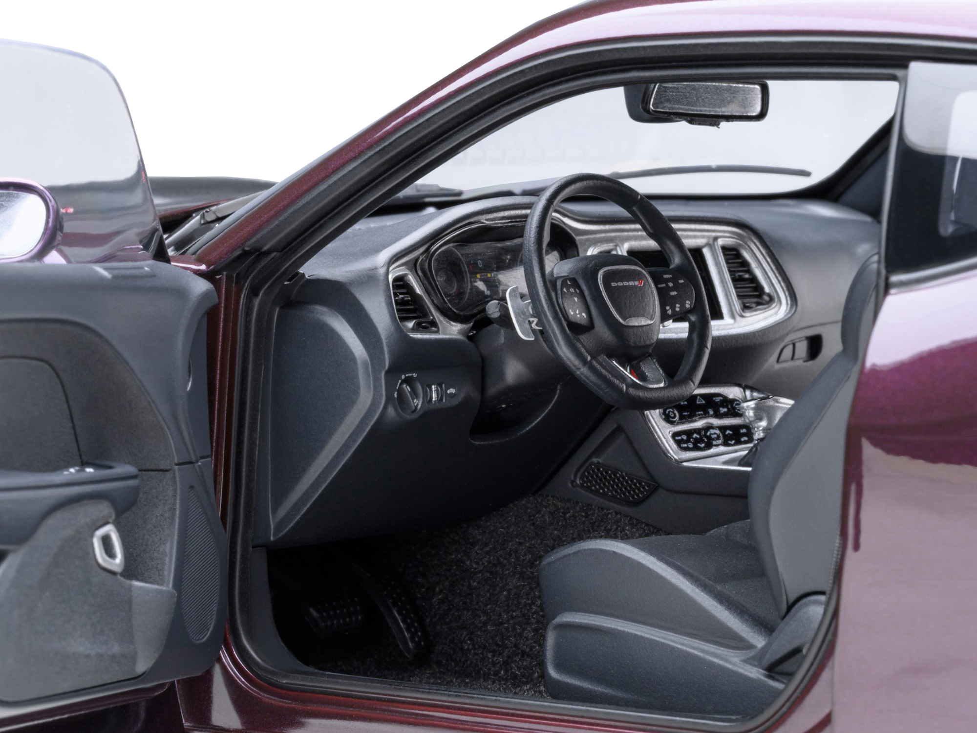 - Brand new 1/18 scale model car of 2022 Dodge Challenger R/T Scat Pack Widebody Hellraisin Purple Metallic car model by Autoart.