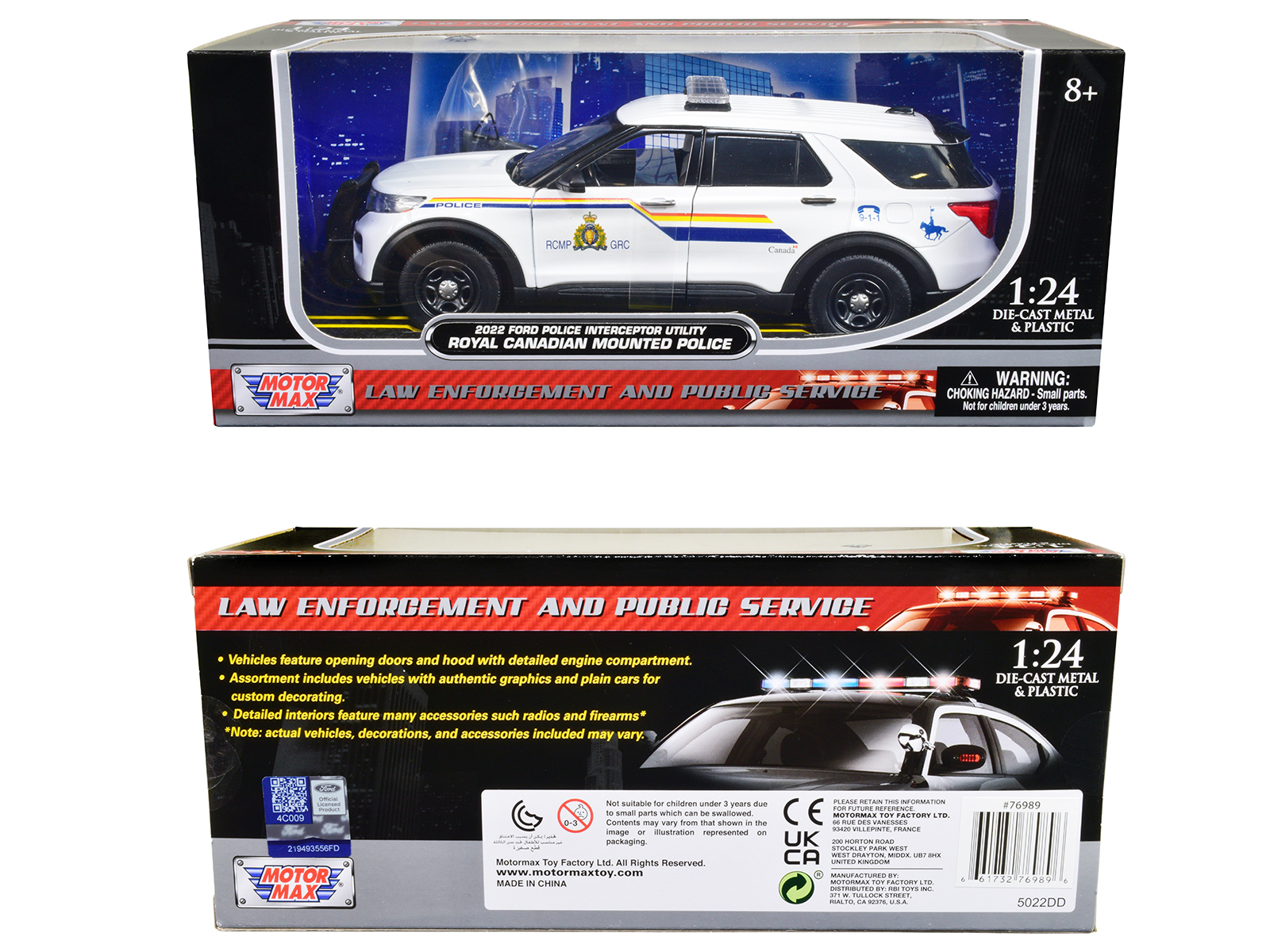 - Brand new 1/24 scale diecast car model of 2022 Ford Police Interceptor Utility “RCMP (Royal Canadian Mounted Police)” White die cast model car by Motormax.