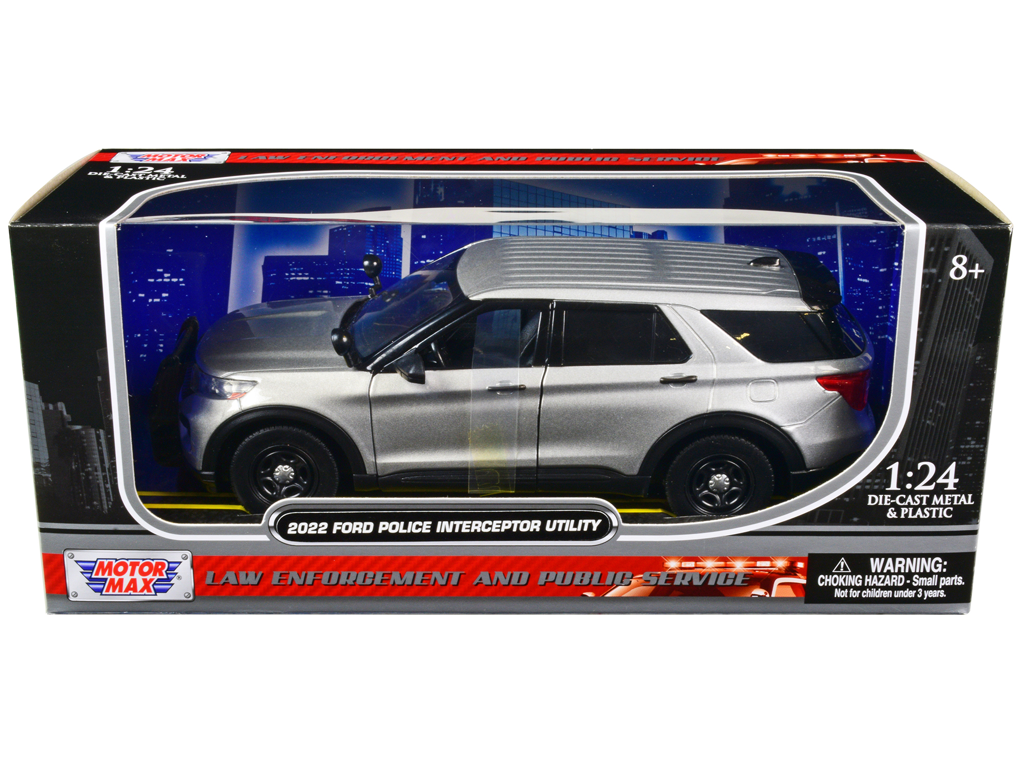 - Brand new 1/24 scale diecast car model of 2022 Ford Police Interceptor Utility Unmarked Slick-Top Silver die cast model car by Motormax.