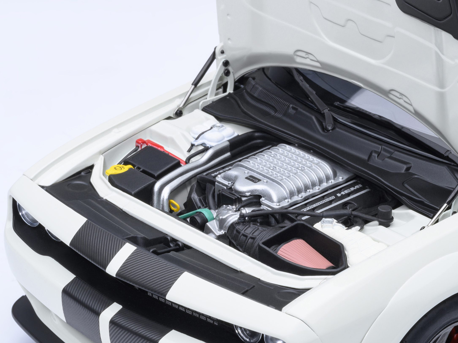 - Brand new 1/18 scale model car of 2023 Dodge Challenger SRT Super Stock Knuckle White with Carbon Stripes car model by Autoart.