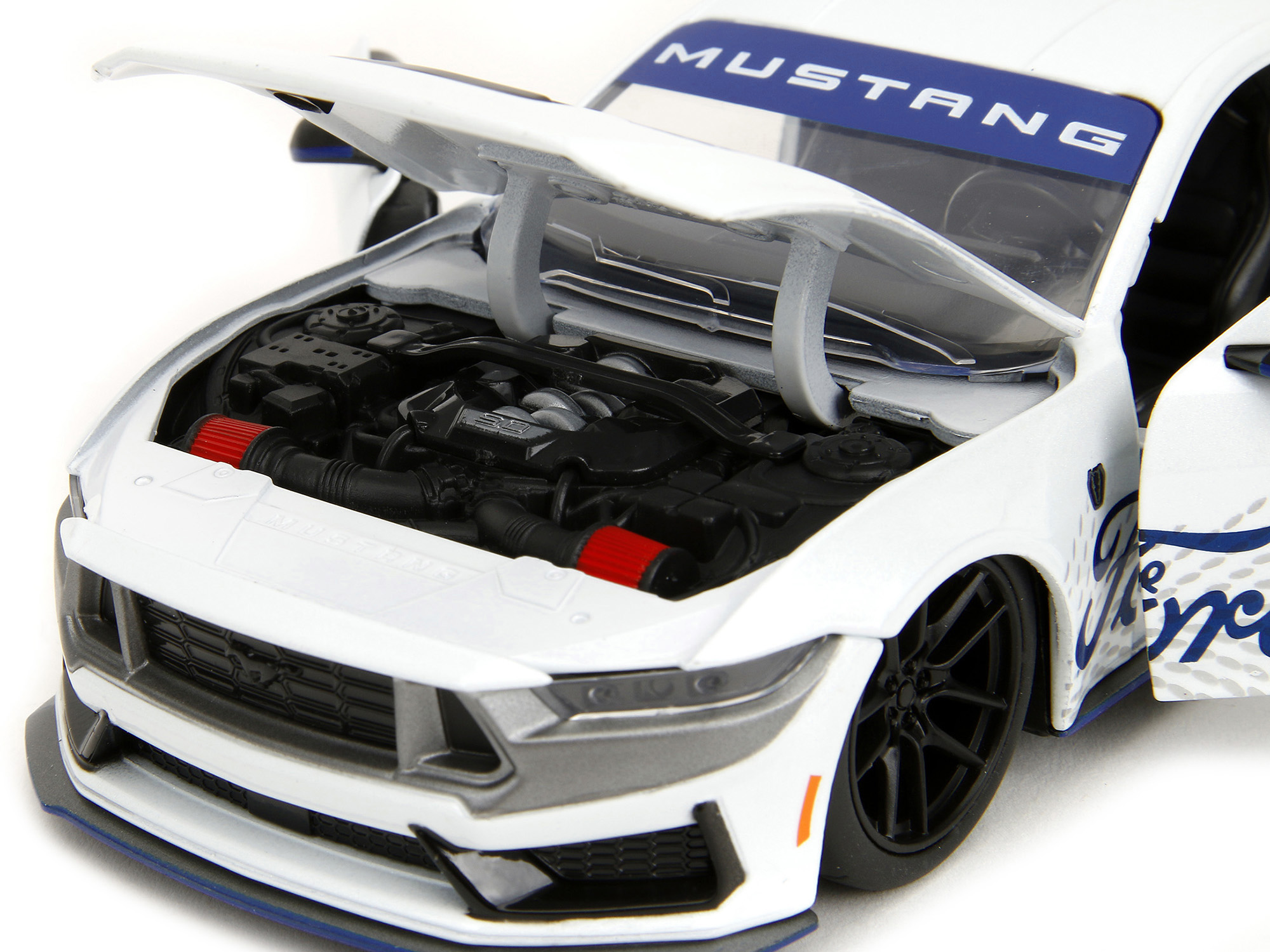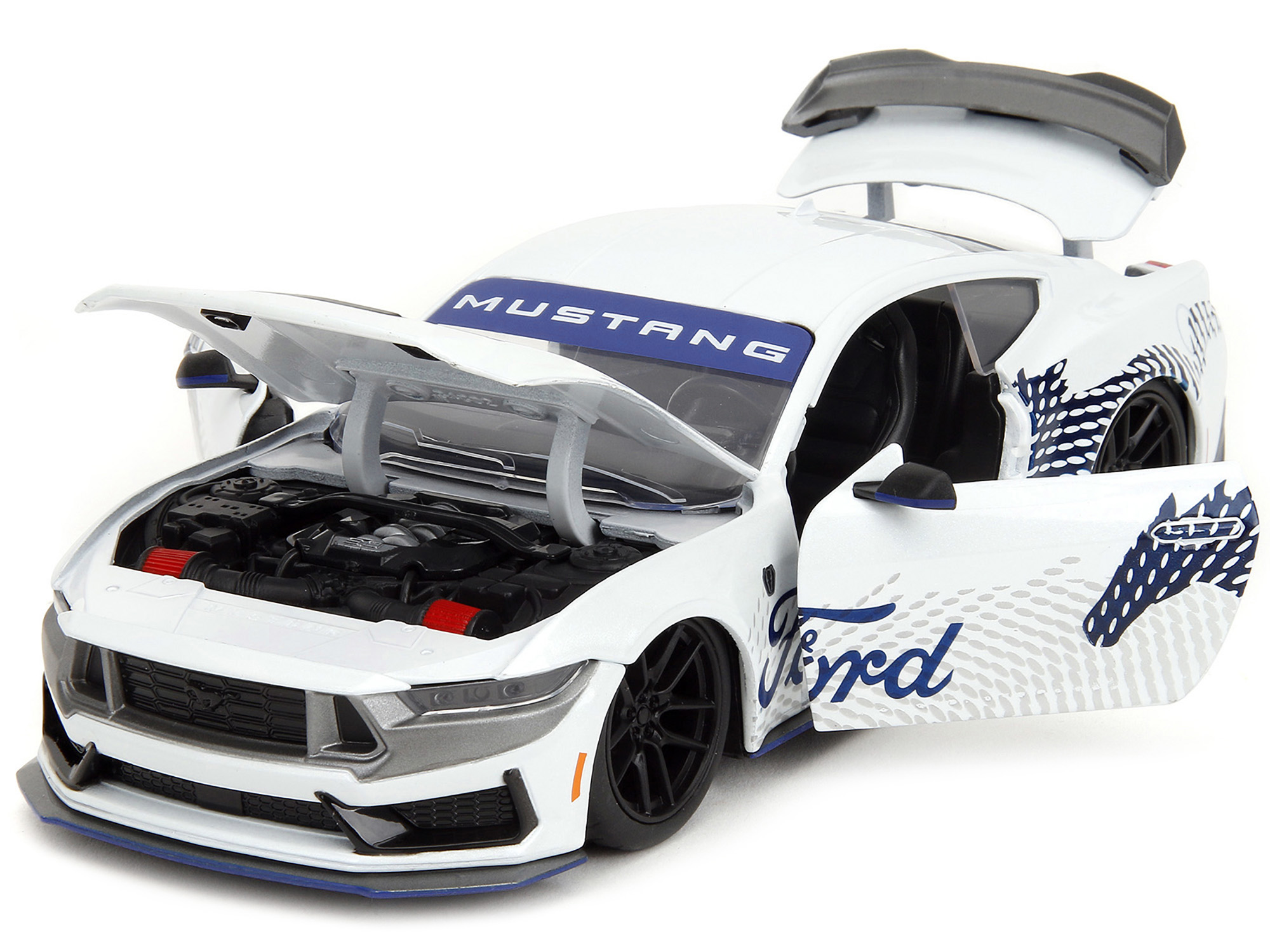 - Brand new 1/24 scale diecast car model of 2024 Ford Mustang Dark Horse White with “Mustang Horse Graphics” “Bigtime Muscle” Series die cast model car by Jada.