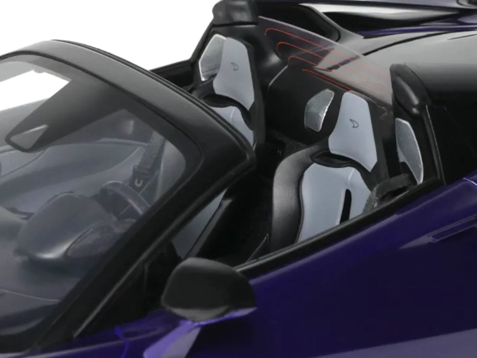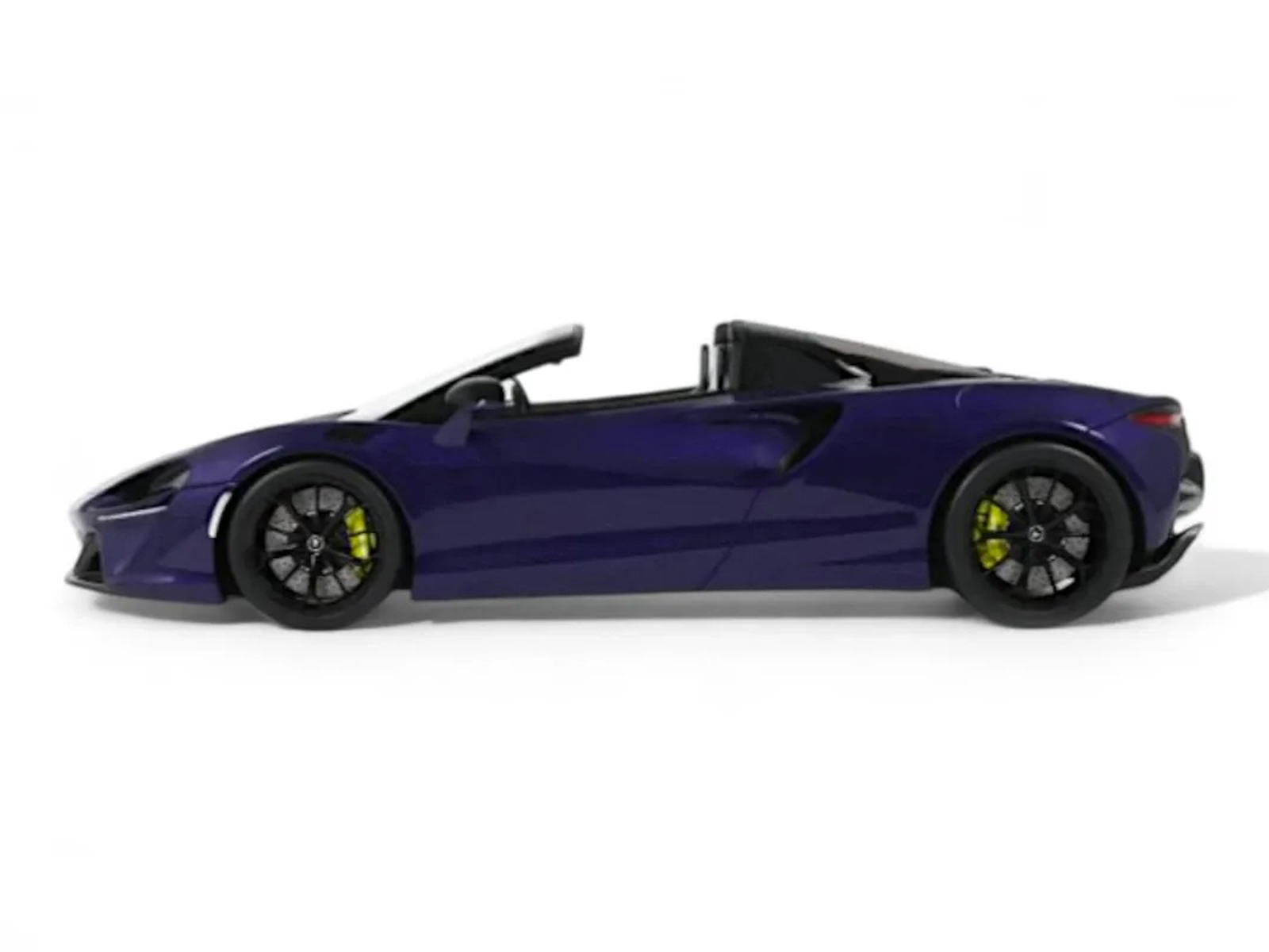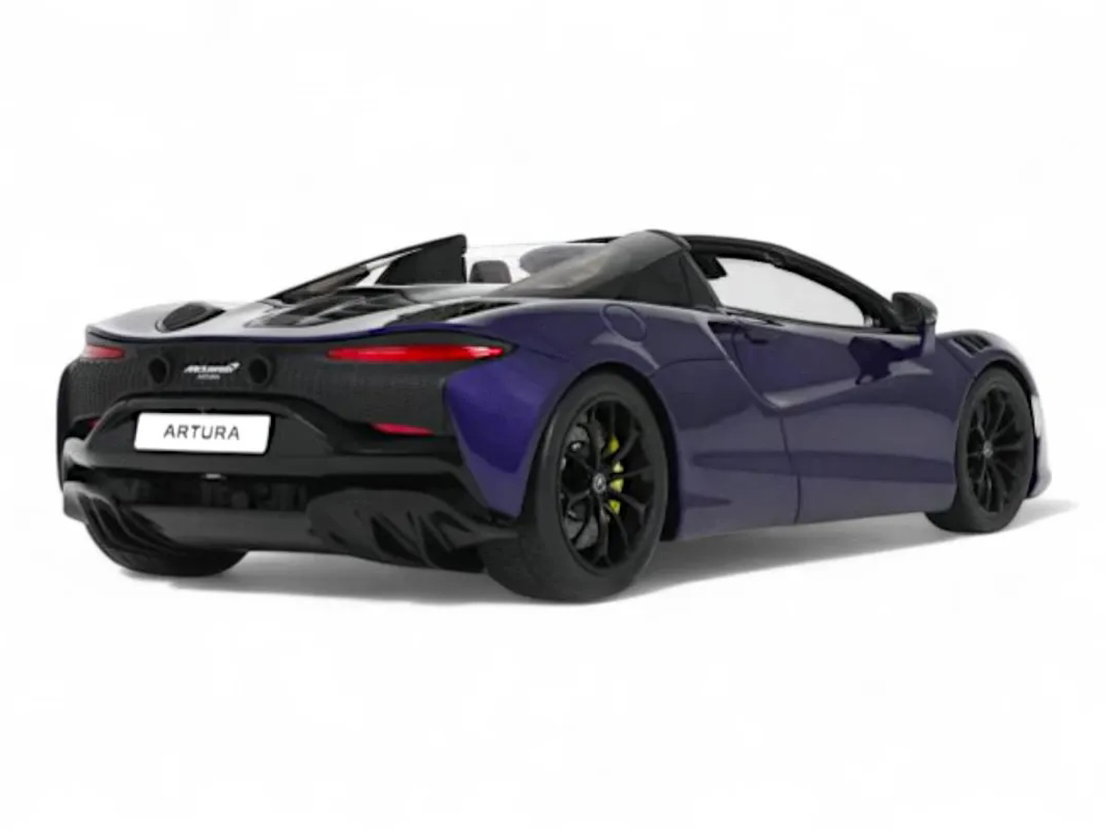 - Brand new 1/18 scale car model of 2024 McLaren Artura Spider Lantana Purple Metallic model car by GT Spirit.