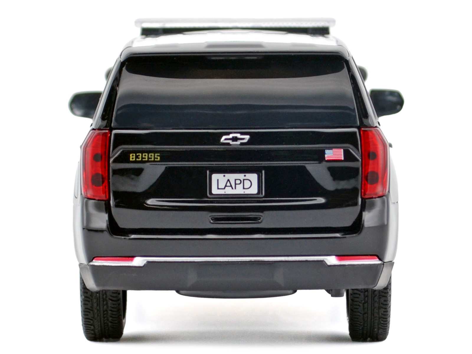 - Brand new 1/24 scale diecast car model of 2025 Chevrolet Tahoe Police Pursuit Vehicle “Los Angeles Police Department (LAPD)” Black and White “Law Enforcement and Public Service” Series die cast model car by Motormax.
