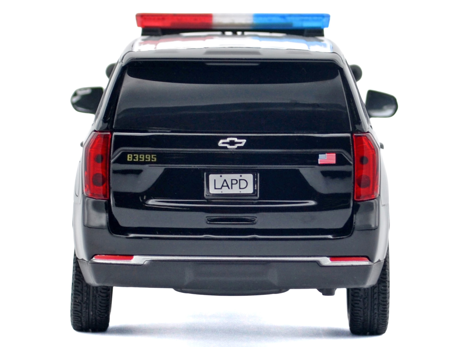 - Brand new 1/24 scale diecast car model of 2025 Chevrolet Tahoe PPV “LAPD (Los Angeles Police Department)” Black and White with Flashing Light Bar and Front and Rear Lights and Sounds die cast model car by Motormax.