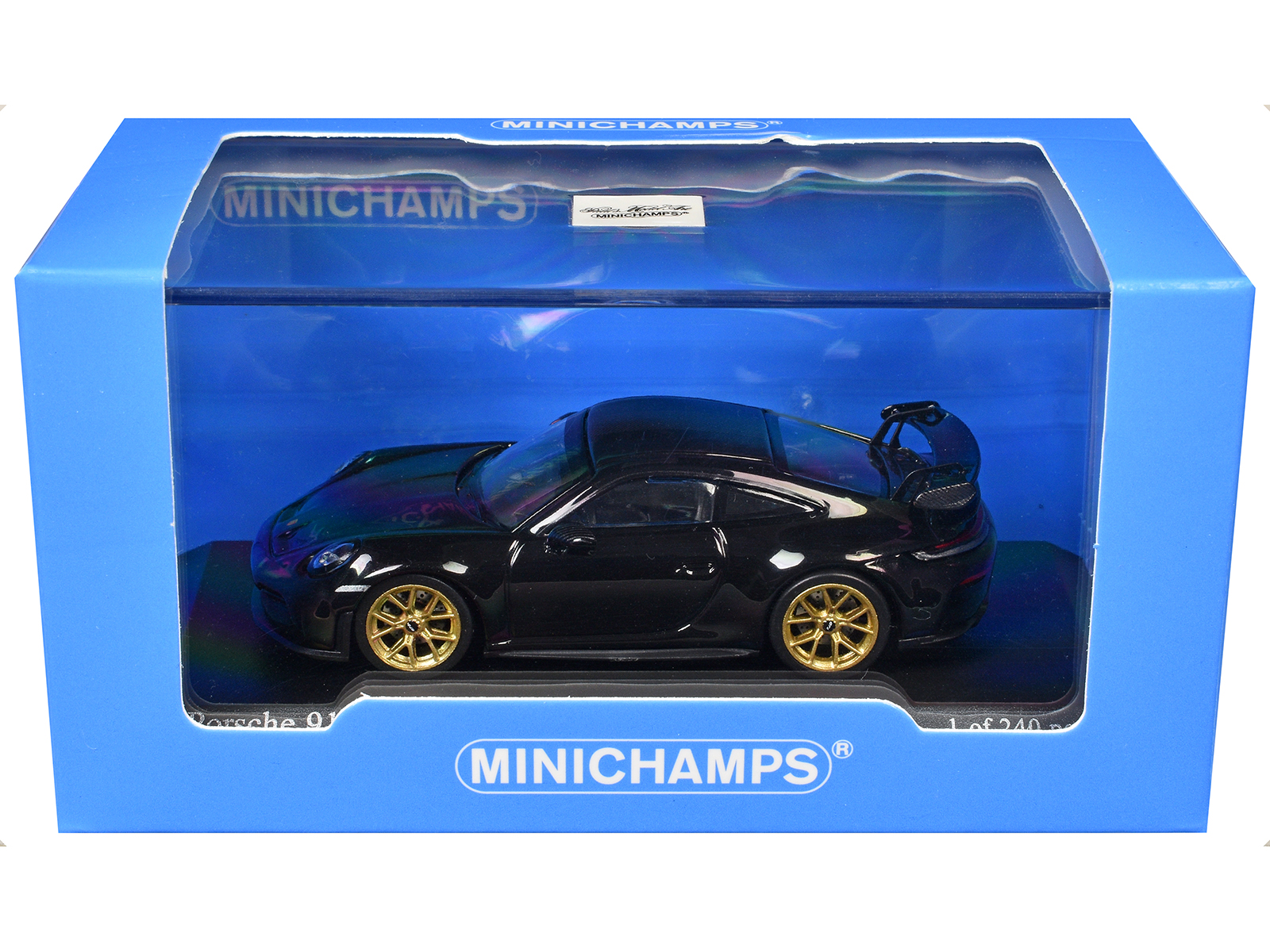 - Brand new 1/64 scale diecast car model of 2025 Porsche 911 (992.2) GT3 Weissach Package Black with Carbon Stripe Limited Edition to 240 pieces Worldwide die cast model car by Minichamps.