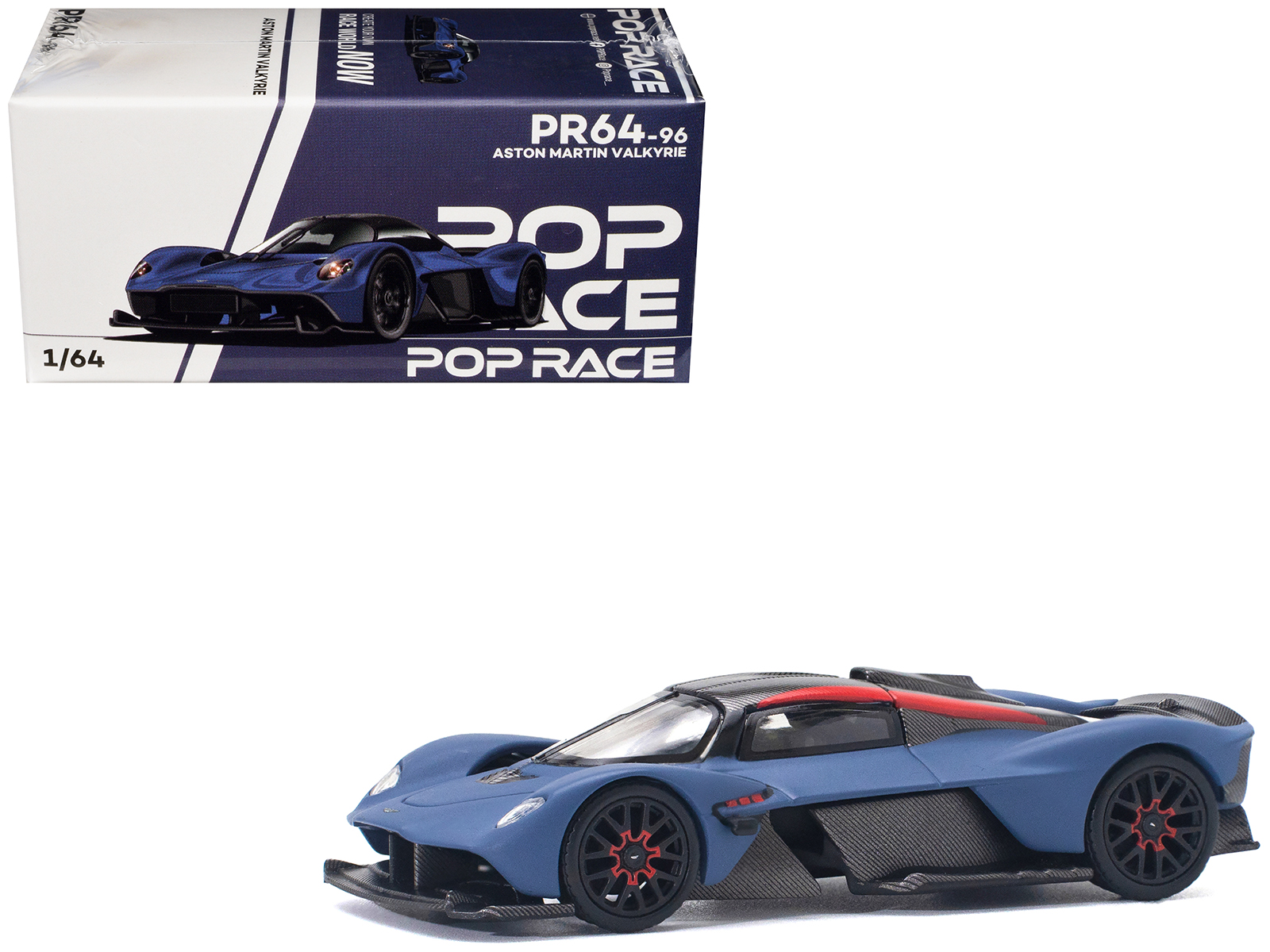 - Brand new 1/64 scale diecast car model of Aston Martin Valkyrie Satin Marina Blue with Carbon Top die cast model car by Pop Race.