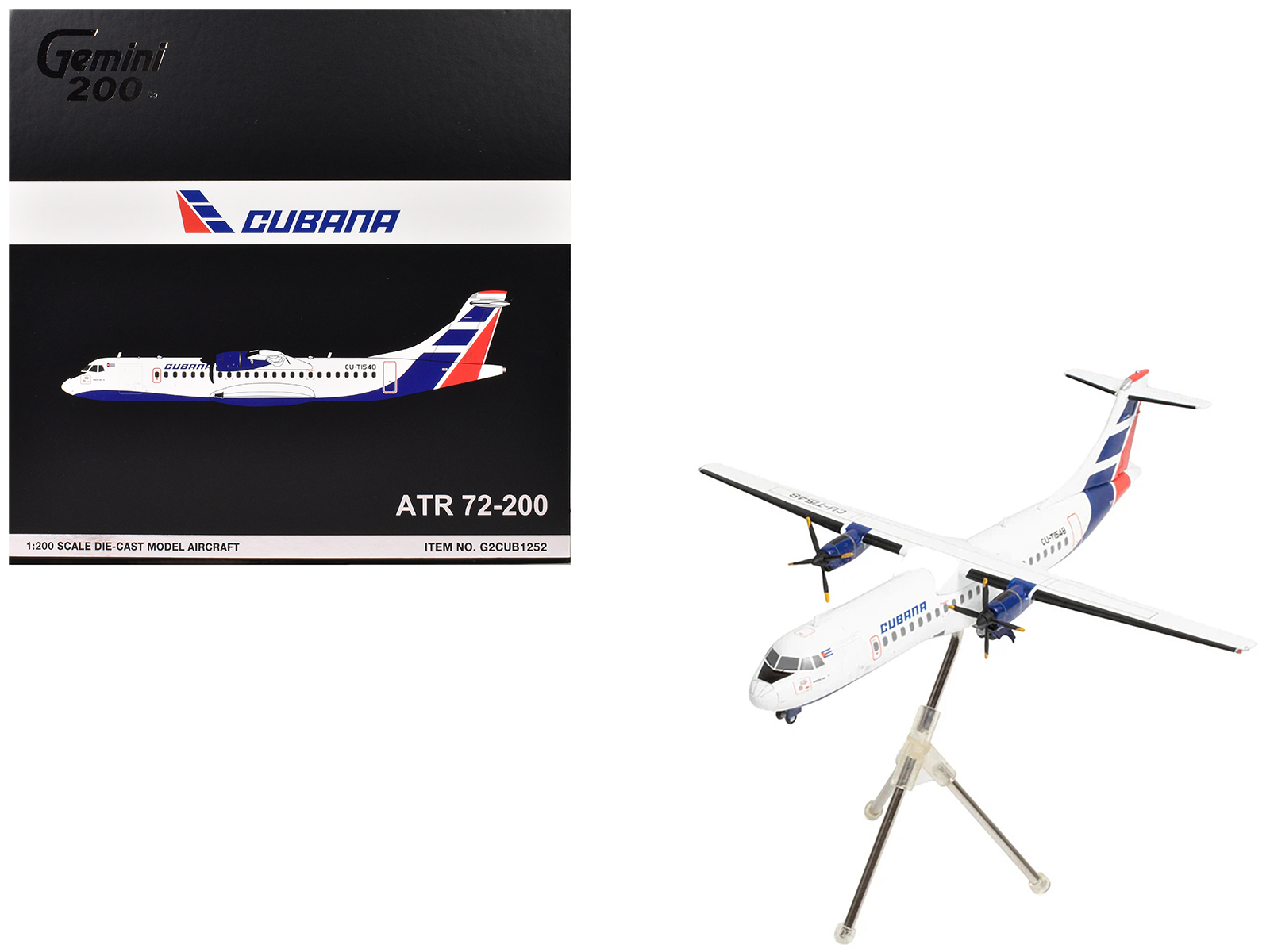 - Brand new 1/200 scale diecast airplane model of ATR 72-200 Commercial Aircraft “Cubana de Aviacion” (CU-T1548) White with Red and Blue Tail “Gemini 200” Series die cast model by GeminiJets.