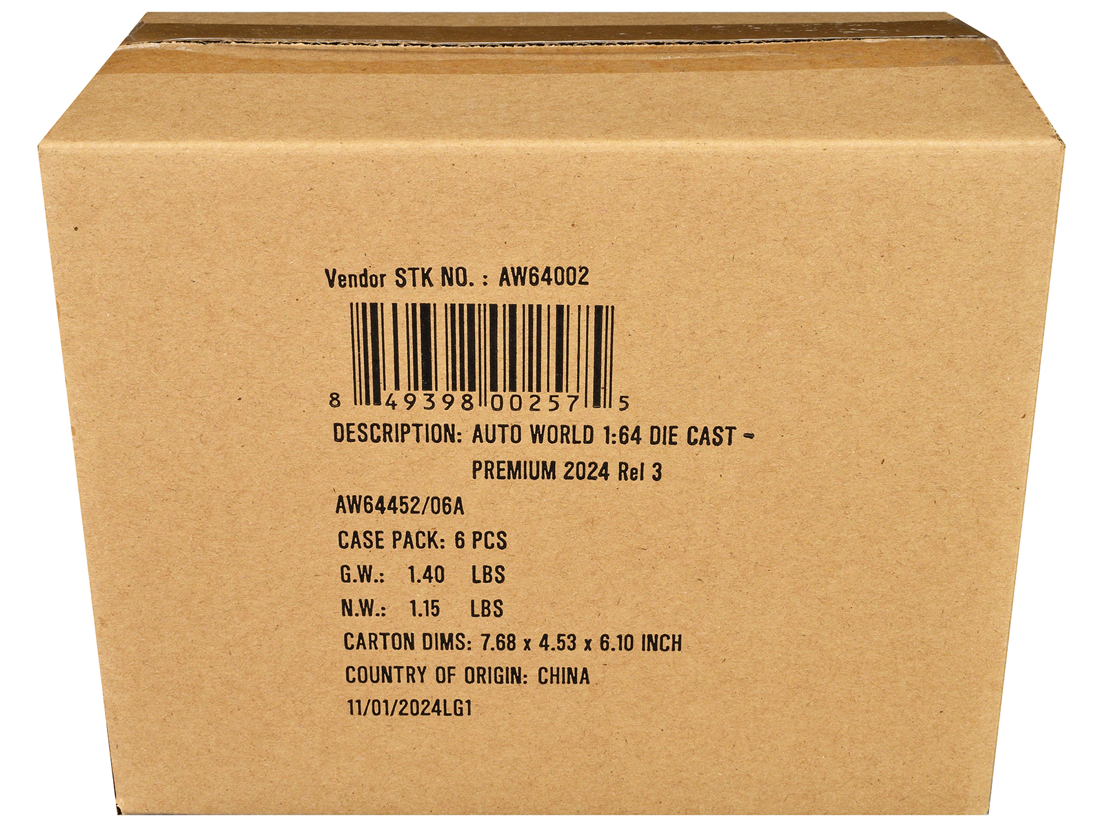 - Brand new 1/64 scale diecast car models of Auto World Premium 2024 Set A of 6 pieces Release 3 die cast model cars by Auto World.
