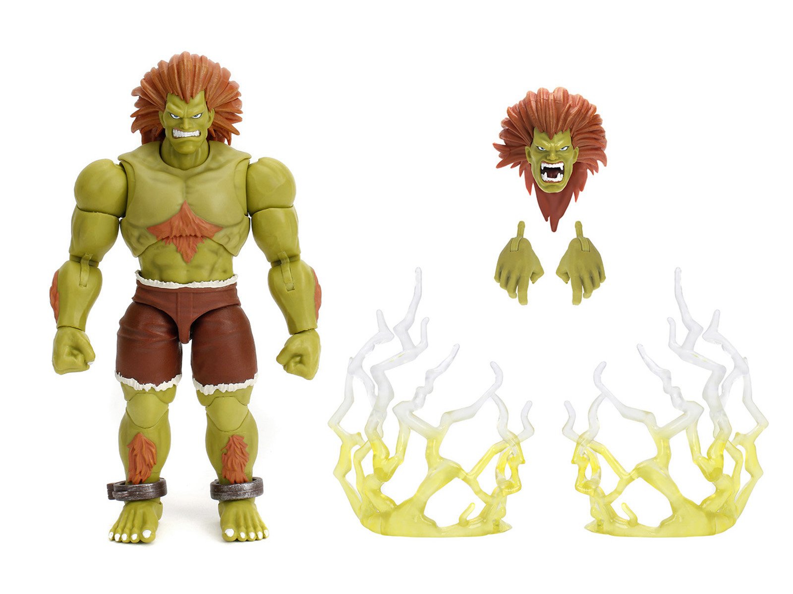 - Brand new model of Blanka 7.5″ Moveable Figure with Accessories and Alternate Head and Hands “Ultra Street Fighter II: The Final Challengers” (2017) Video Game model by Jada.